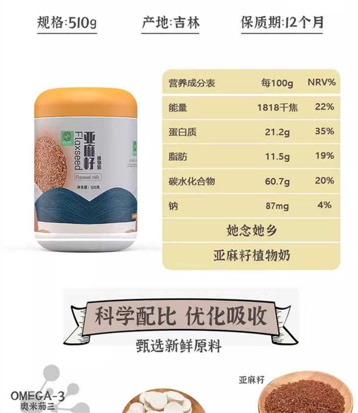 亚麻籽植物奶 素食者的深海鱼油 净素配方