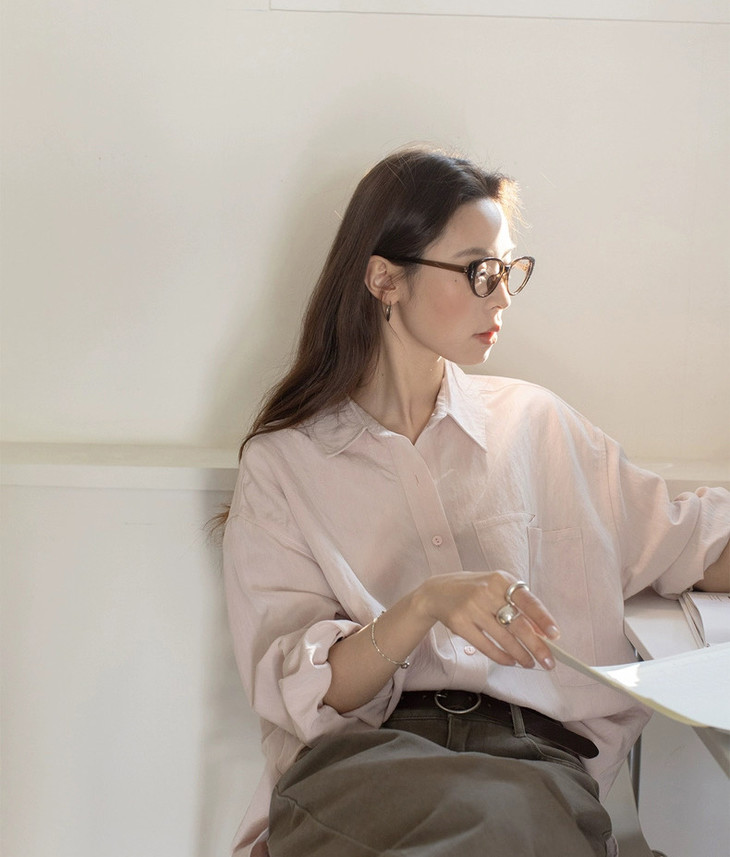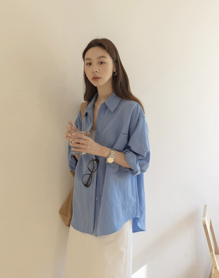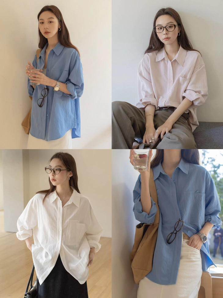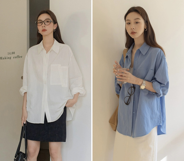 无论下身搭配什么,纯色衬衫都能妥妥地搭配出一套全新造型,成为日常穿搭的心机搭配。
