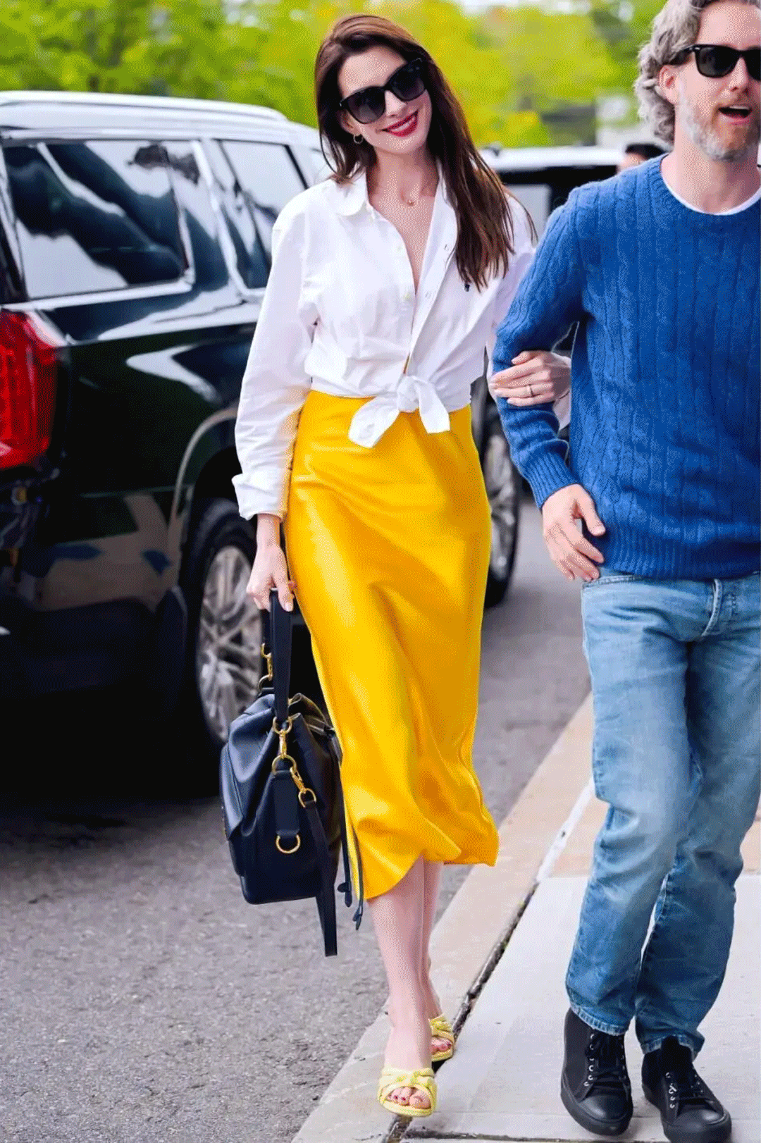 日常穿垂感满满超温柔,想更时髦?直接把一侧衣角塞进裤腰/裙腰,「上短下长」比例秒get。