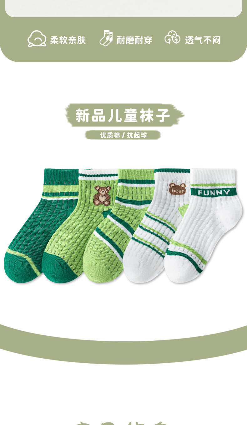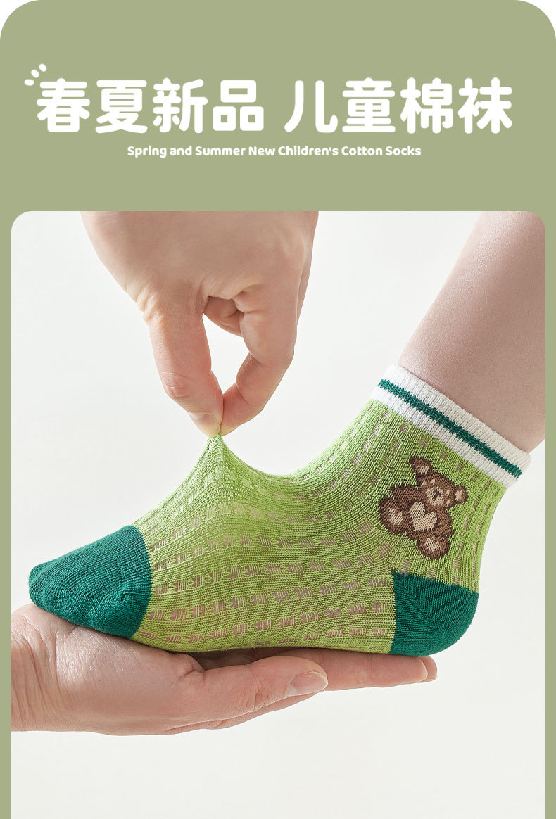 19.9元5双!儿童袜子2023夏季薄款卡通中大童精梳棉短袜透气网眼男童袜子批发