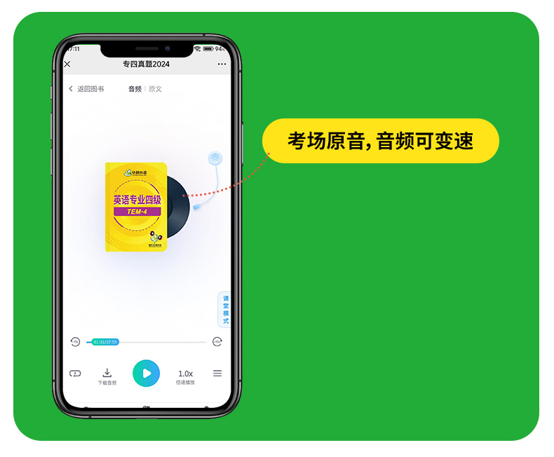 6. 真题音频均为考场原音,配套同步中英双语字幕,可在线听,可下载,可倍速,适合精听提升;