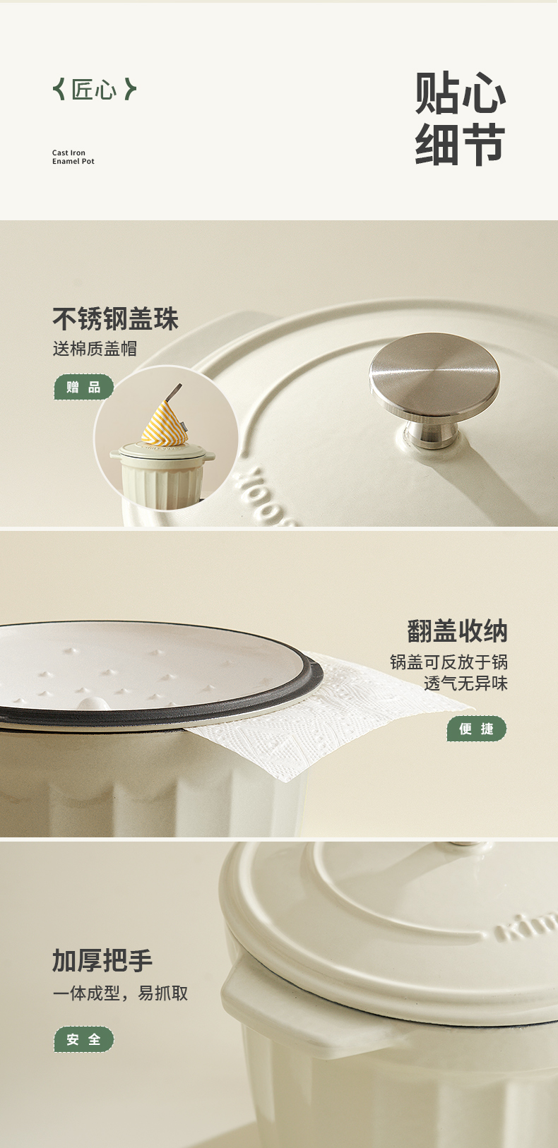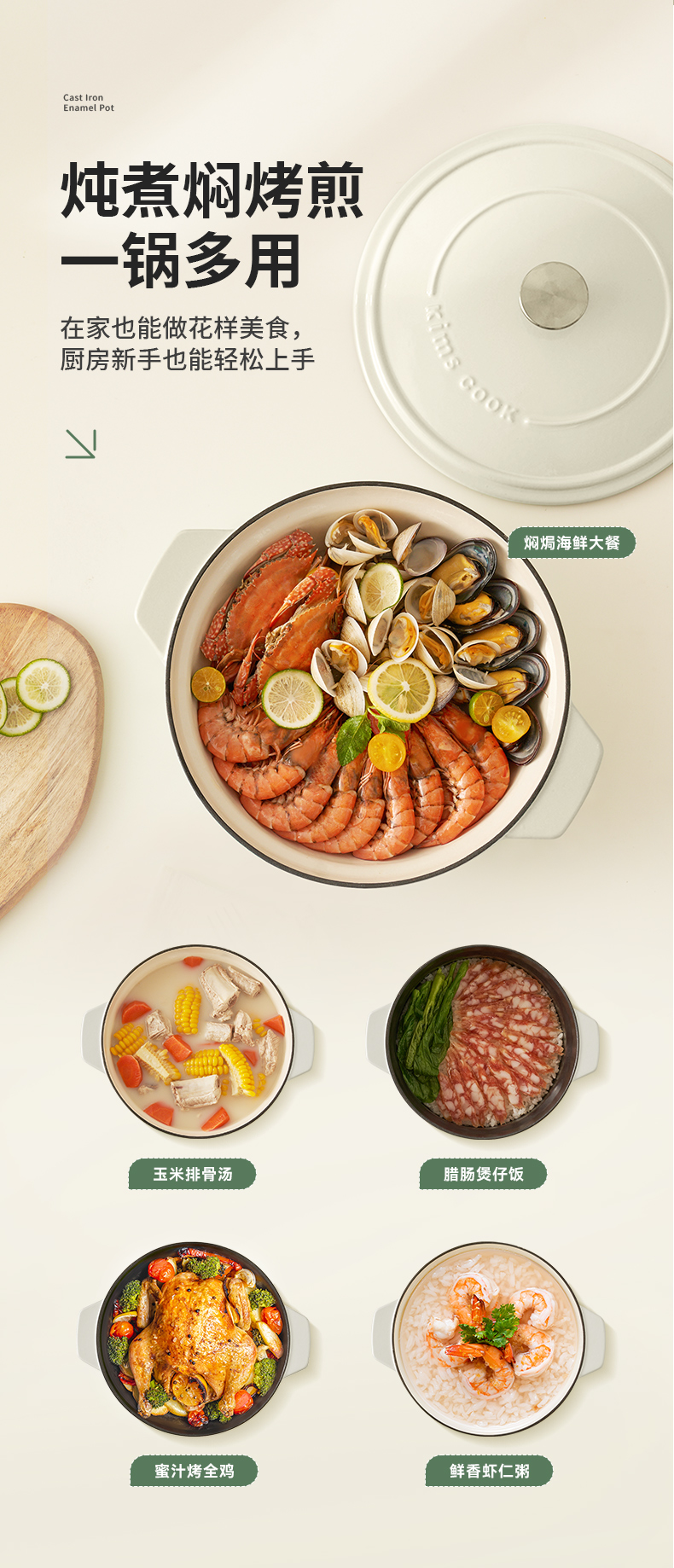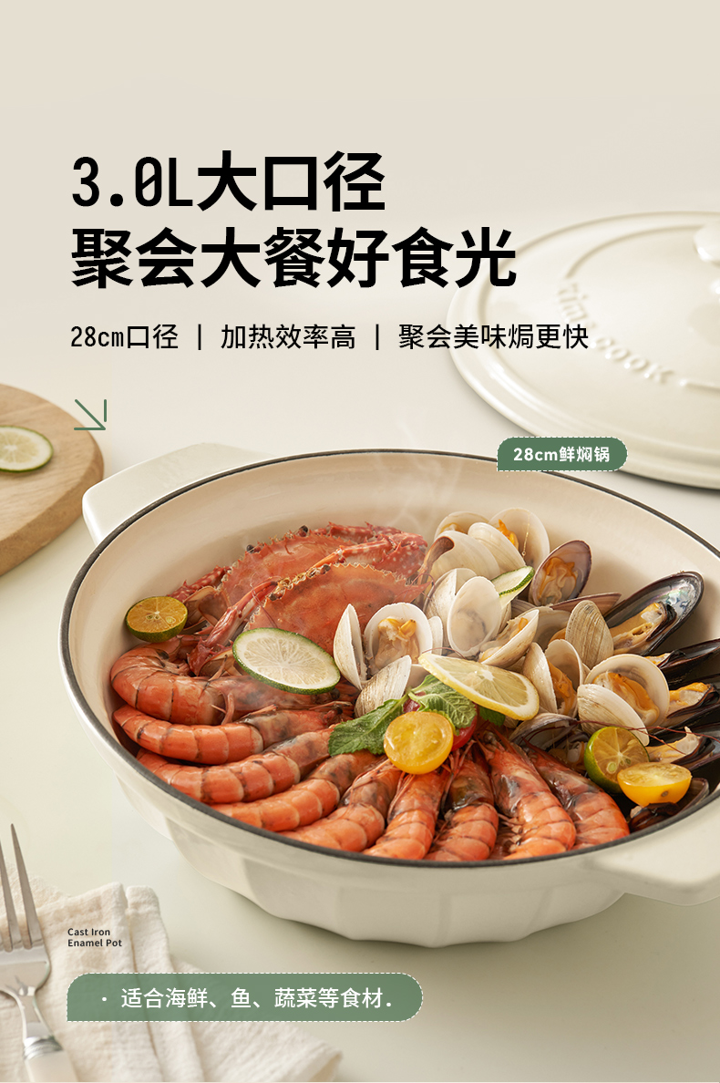 kimscook白珐琅铸铁锅搪瓷炖锅家用燃气砂锅电磁炉汤锅海鲜锅饭釜