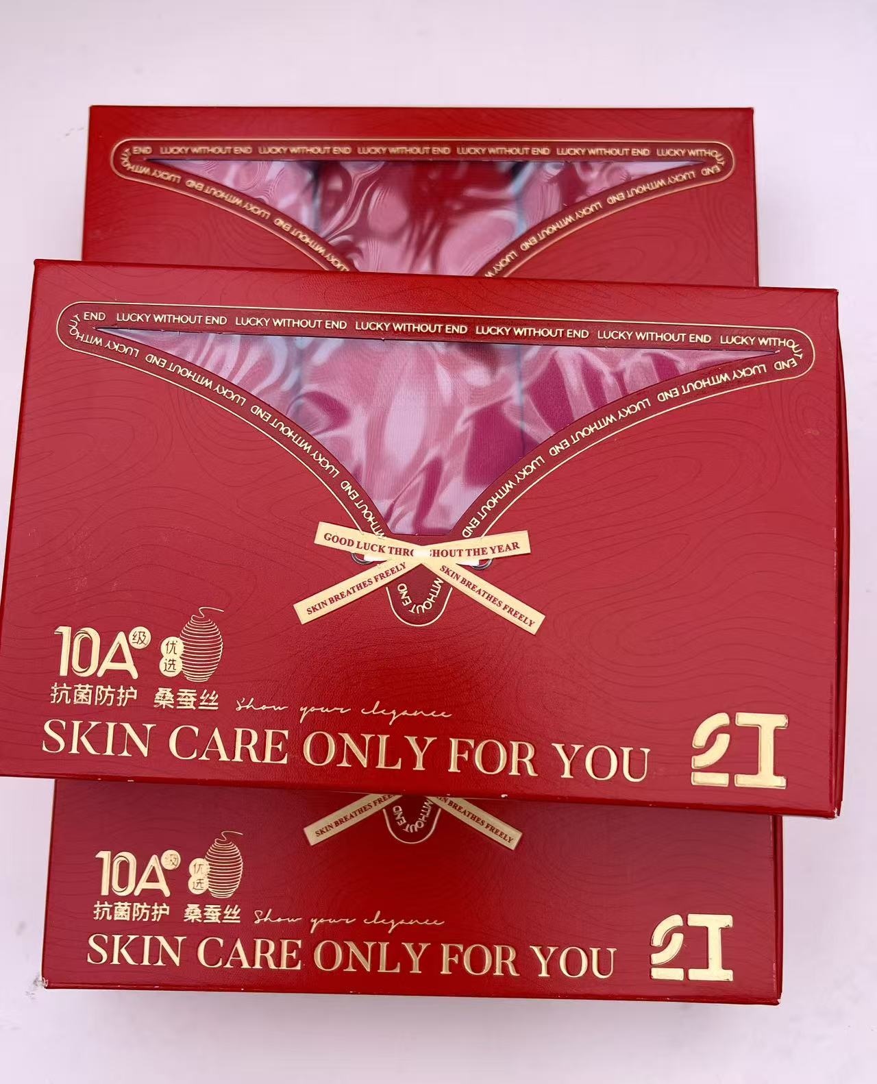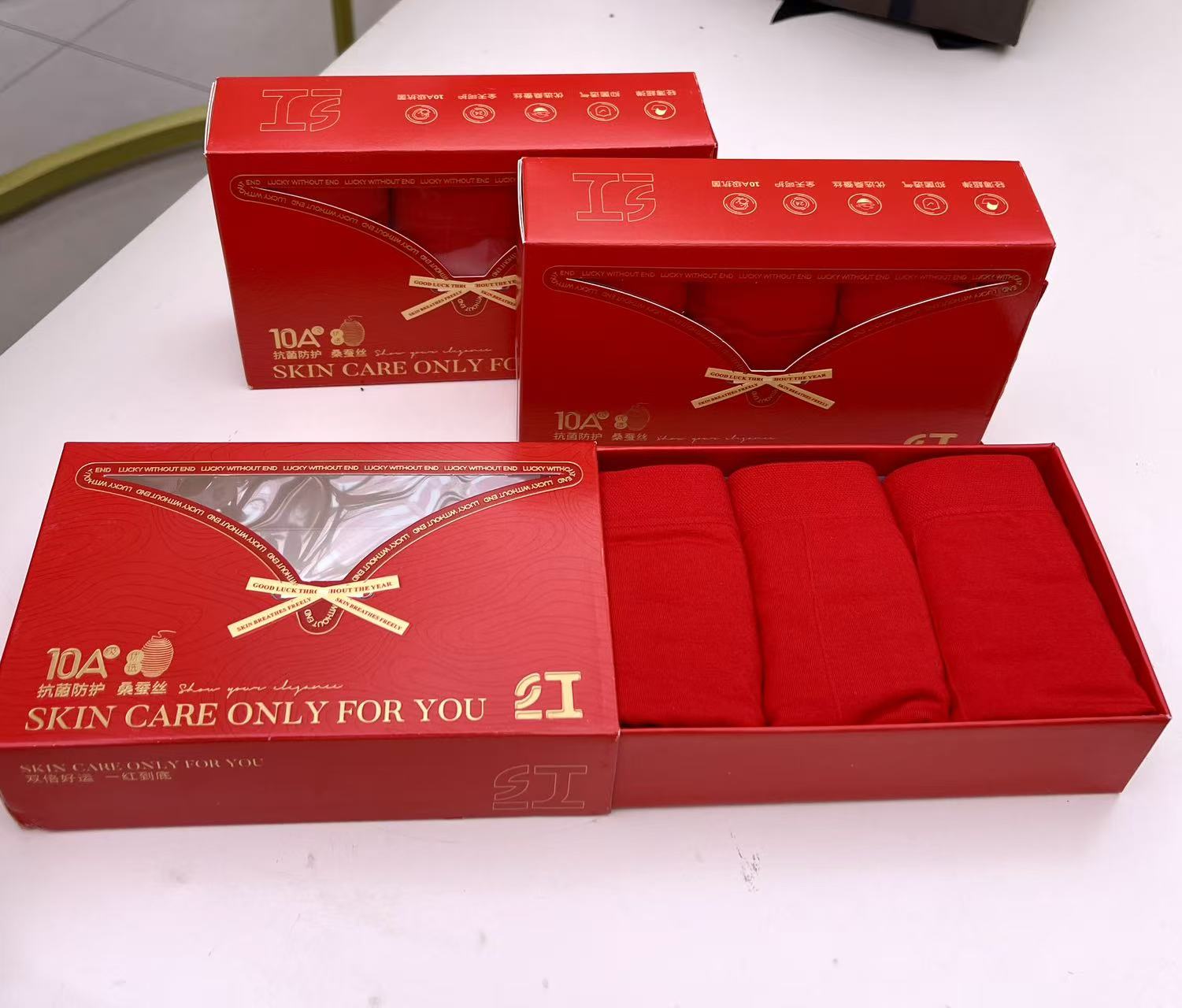 一盒三条大红色10A蚕丝莫代尔裸氨中高腰内裤1295124