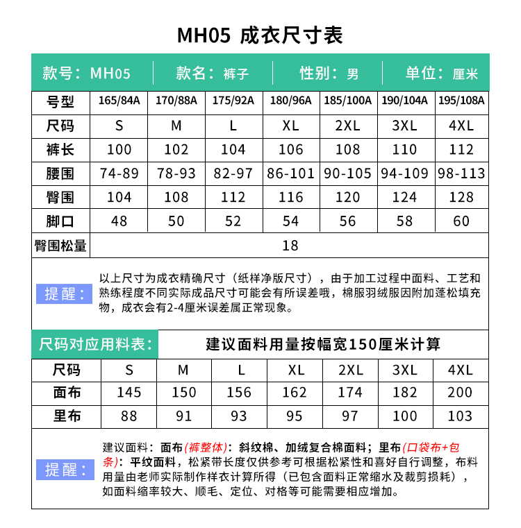 裁缝学苑MH05新款宽松直筒加绒加厚工装裤纸样男装纯棉休闲裤样板图纸