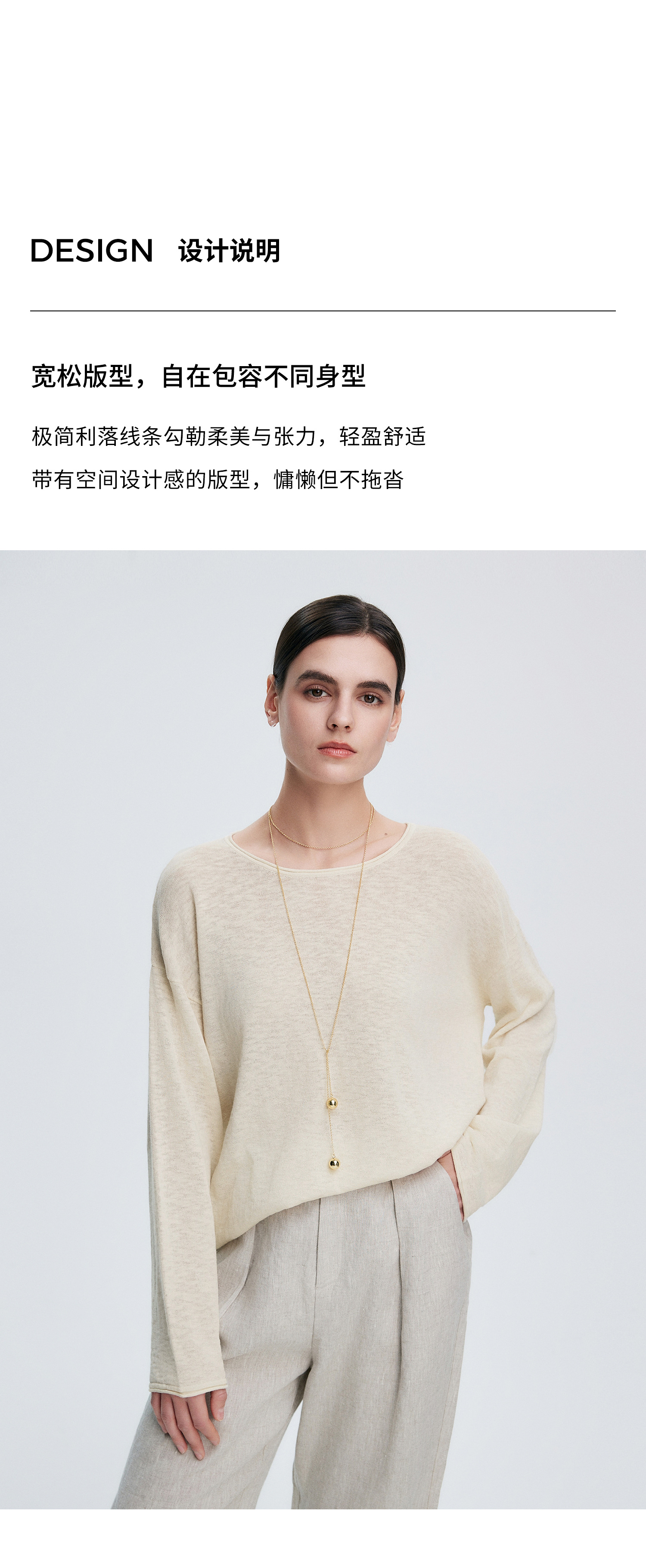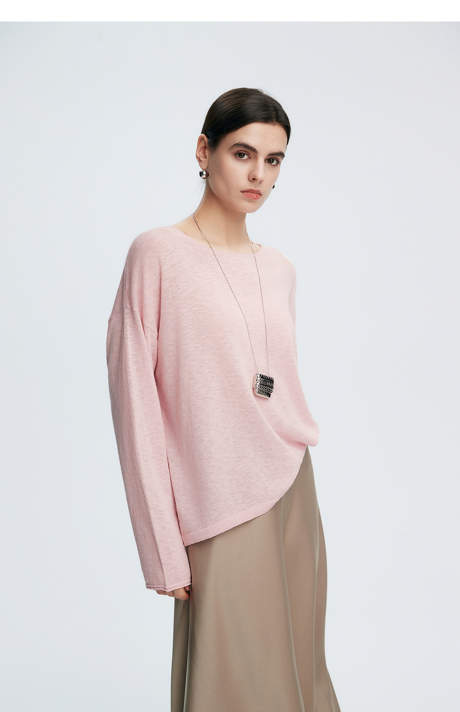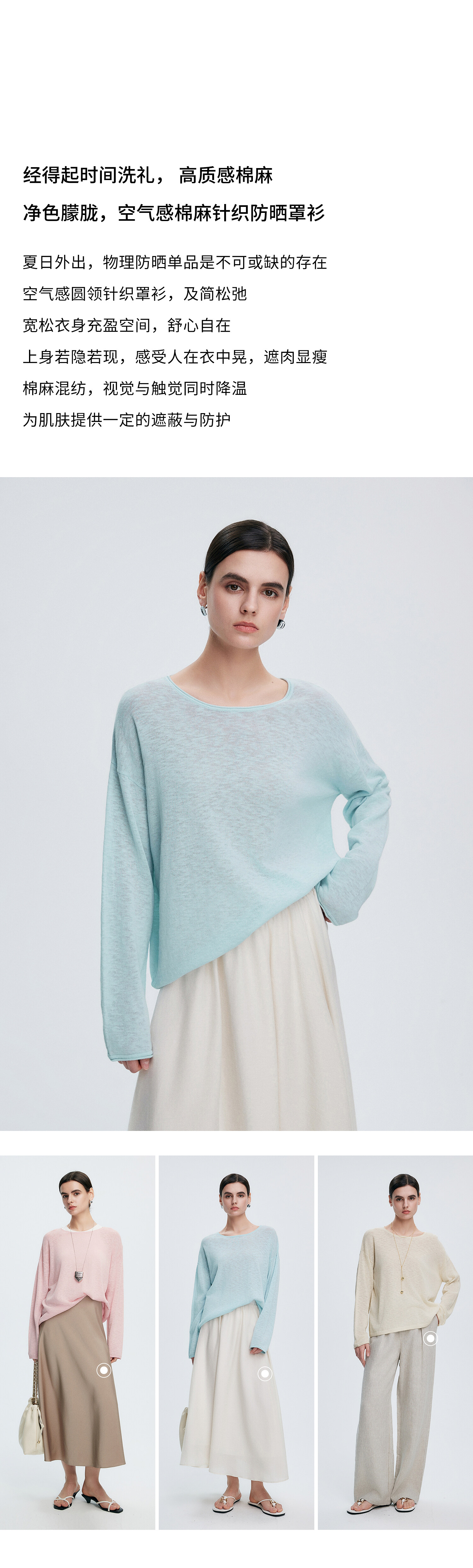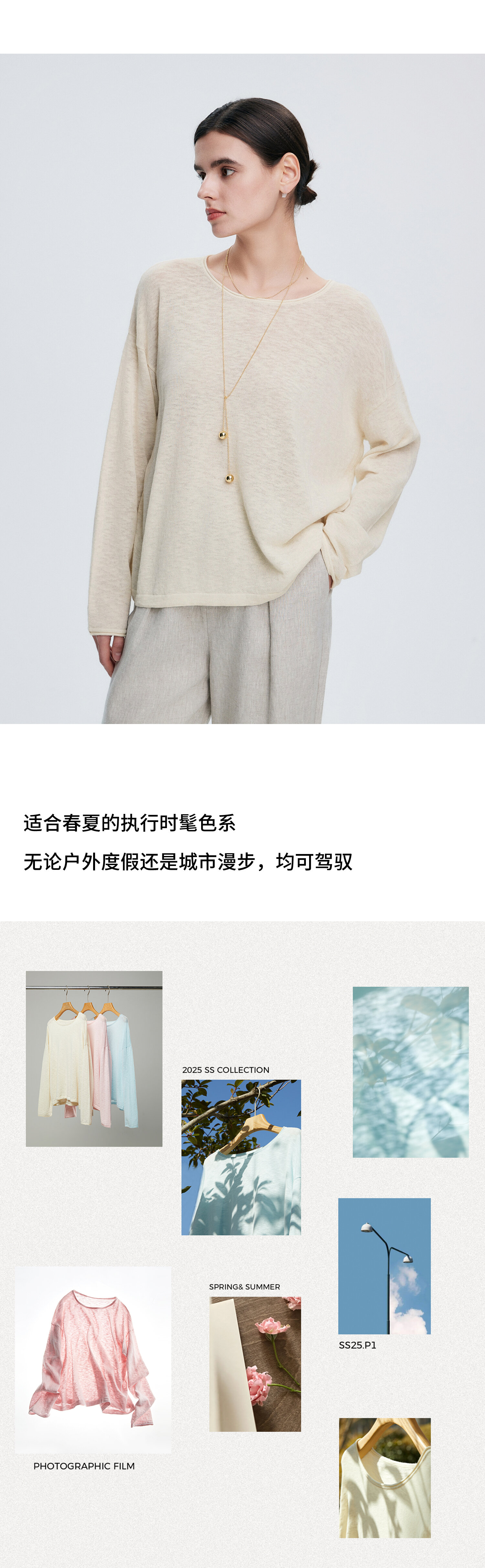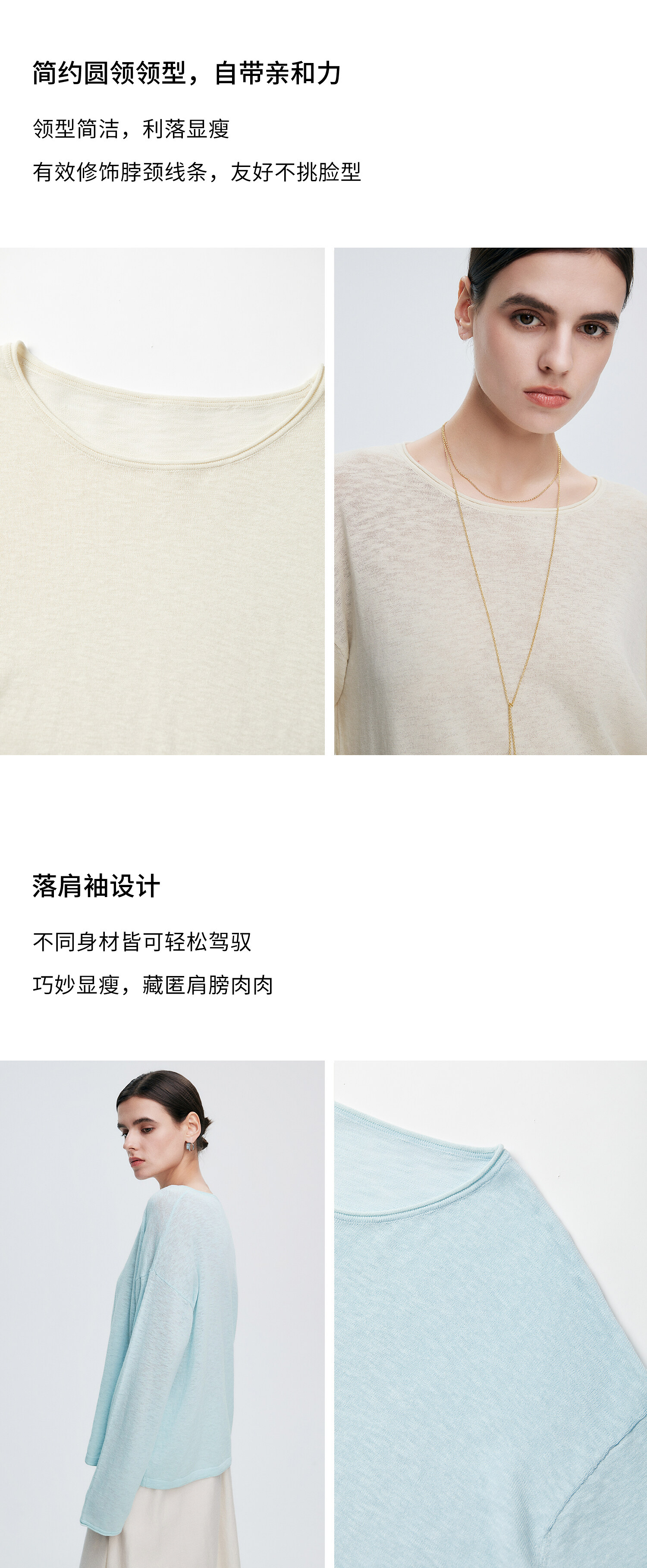 棉仓366601027-25春夏圆领长袖窄肩设计简约时髦感T恤