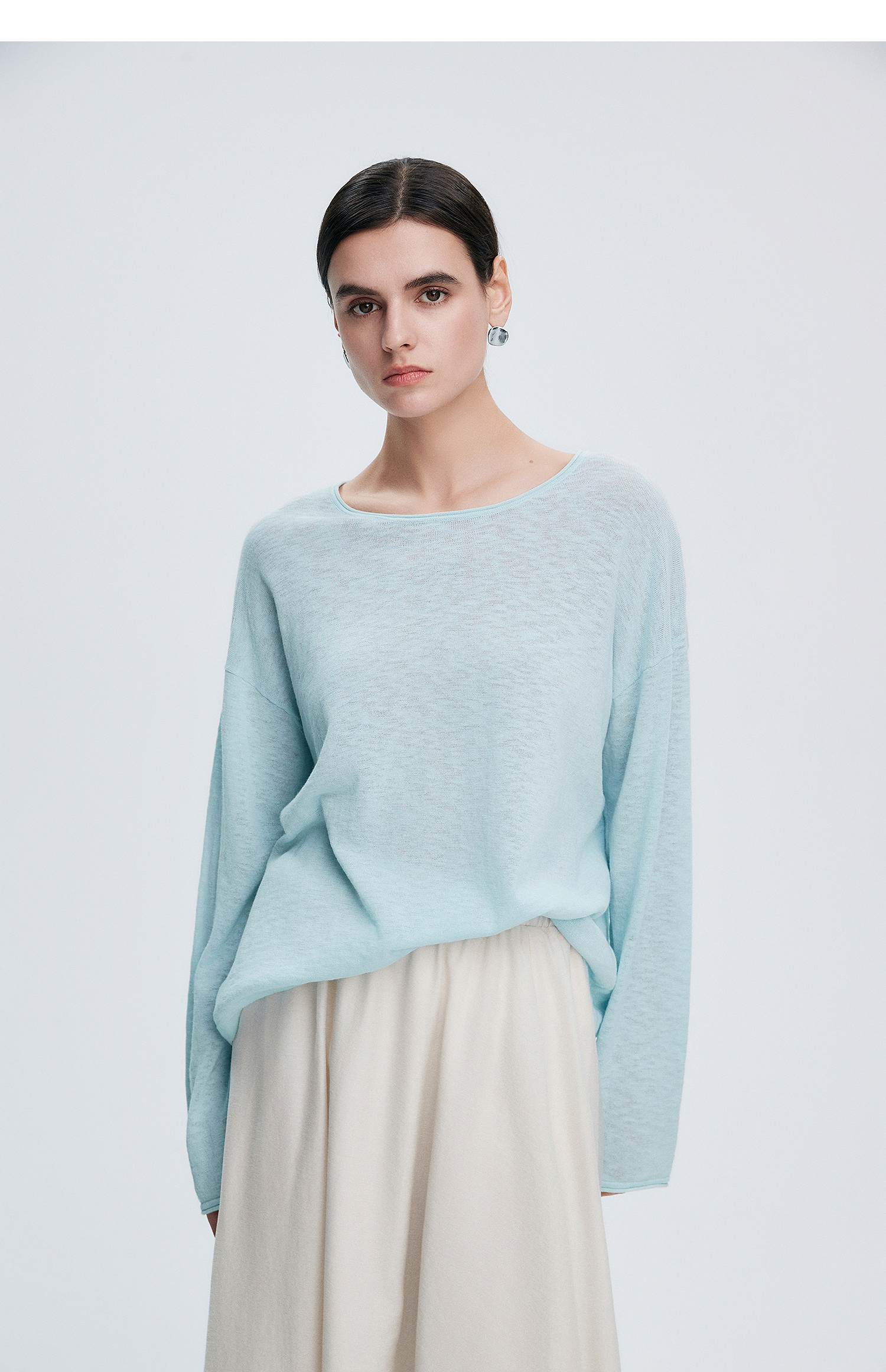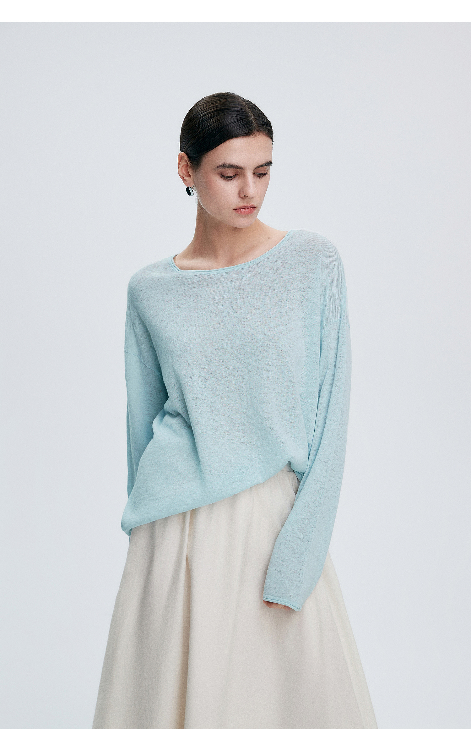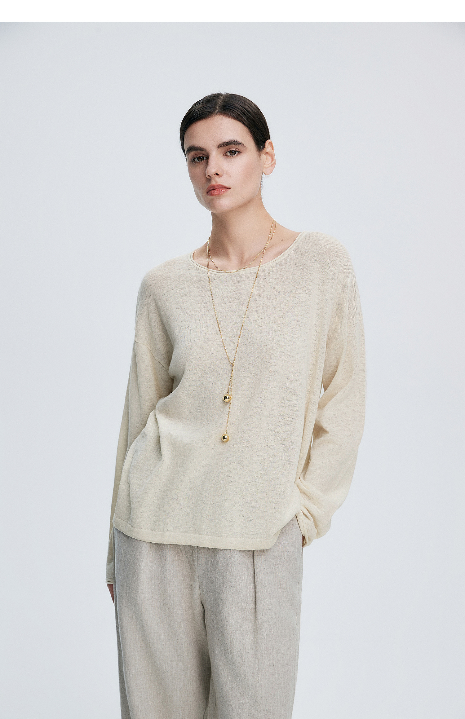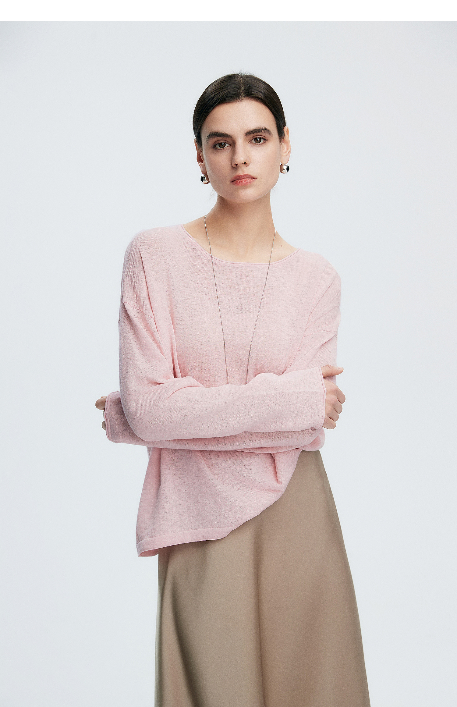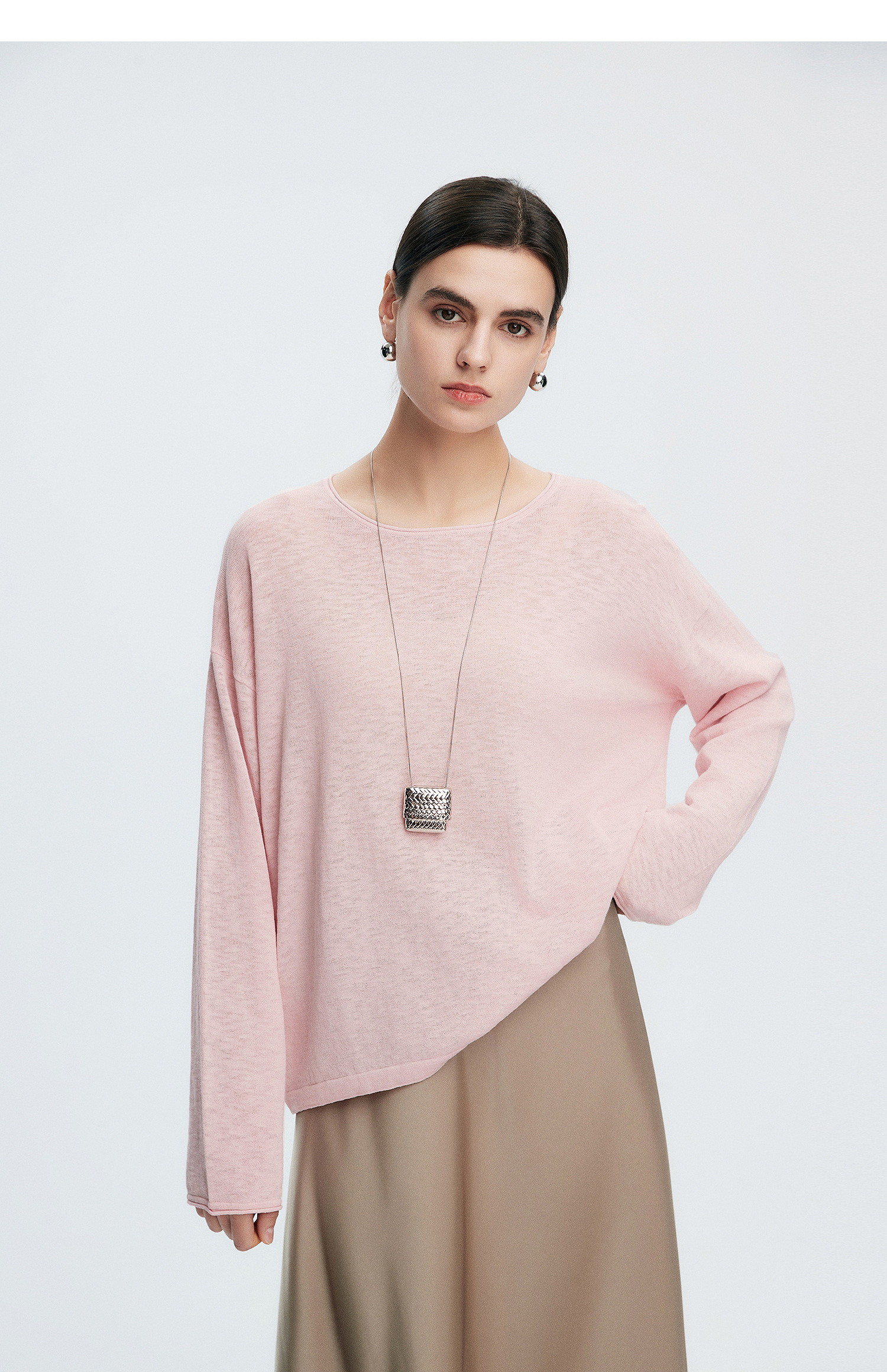 棉仓366601027-25春夏圆领长袖窄肩设计简约时髦感T恤