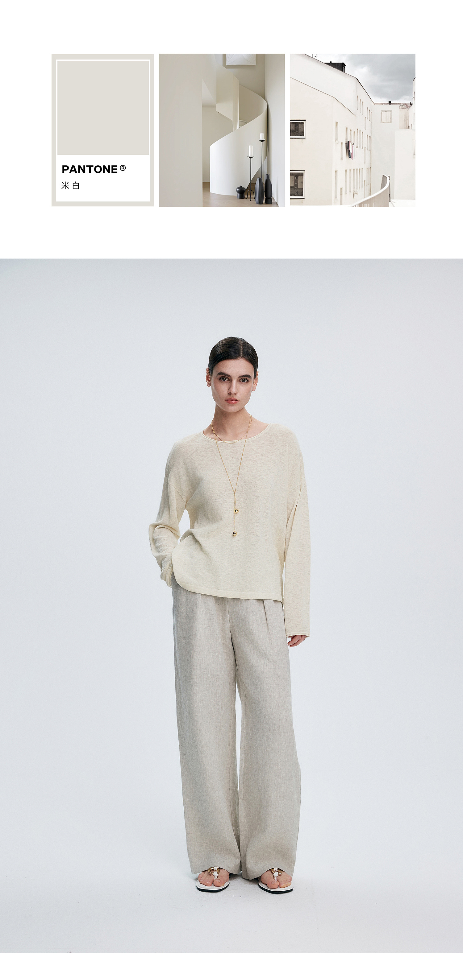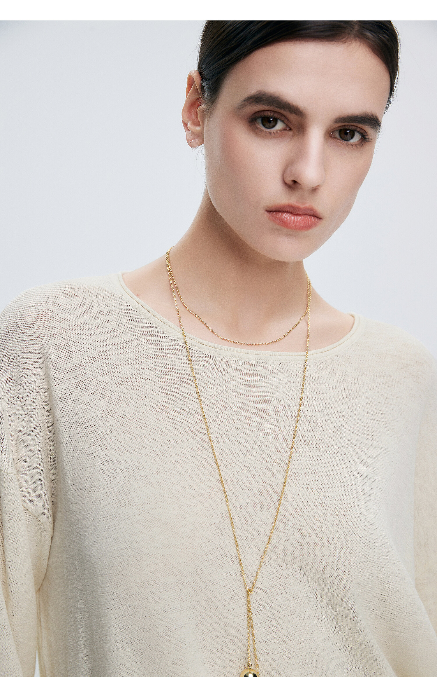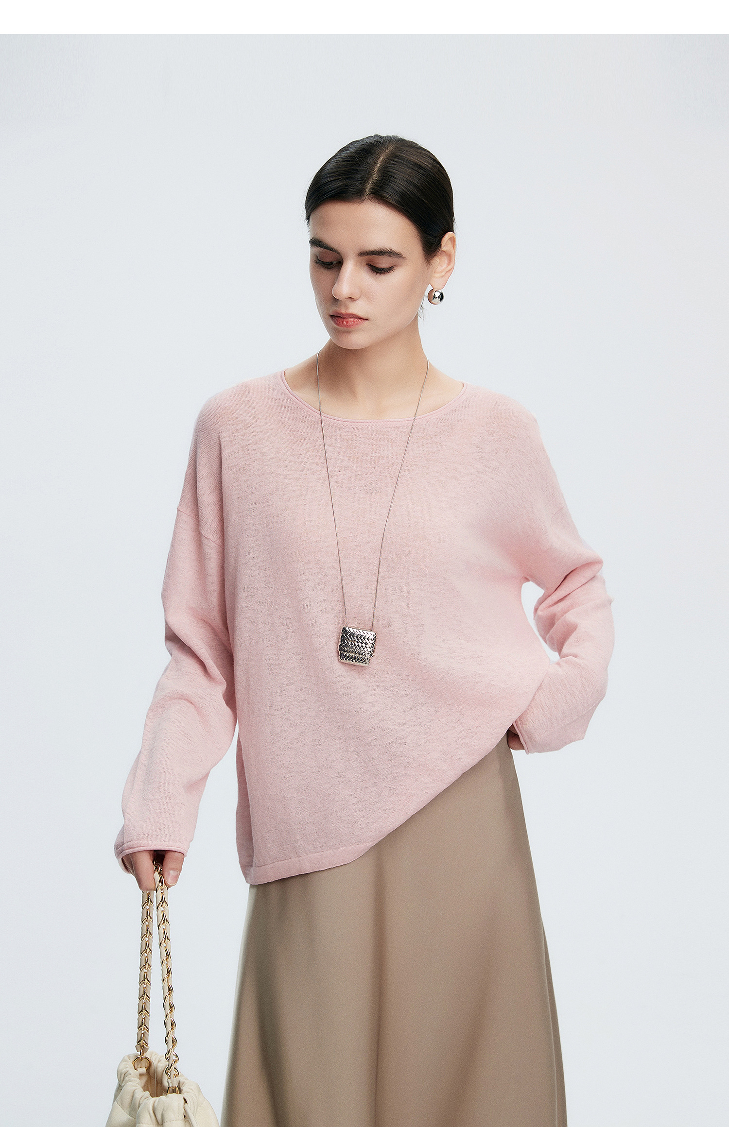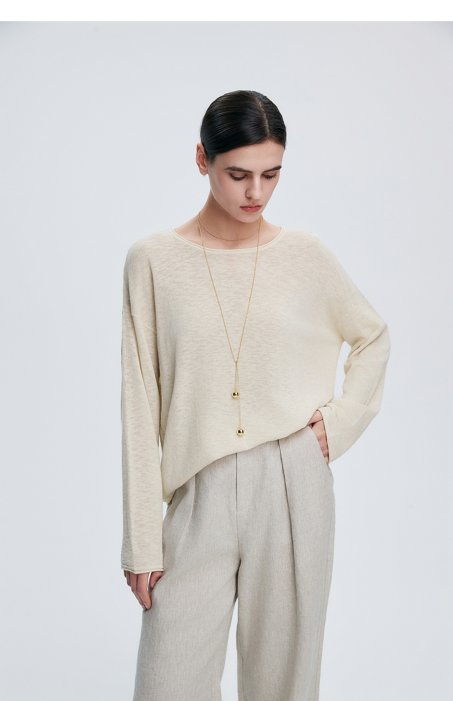 棉仓366601027-25春夏圆领长袖窄肩设计简约时髦感T恤