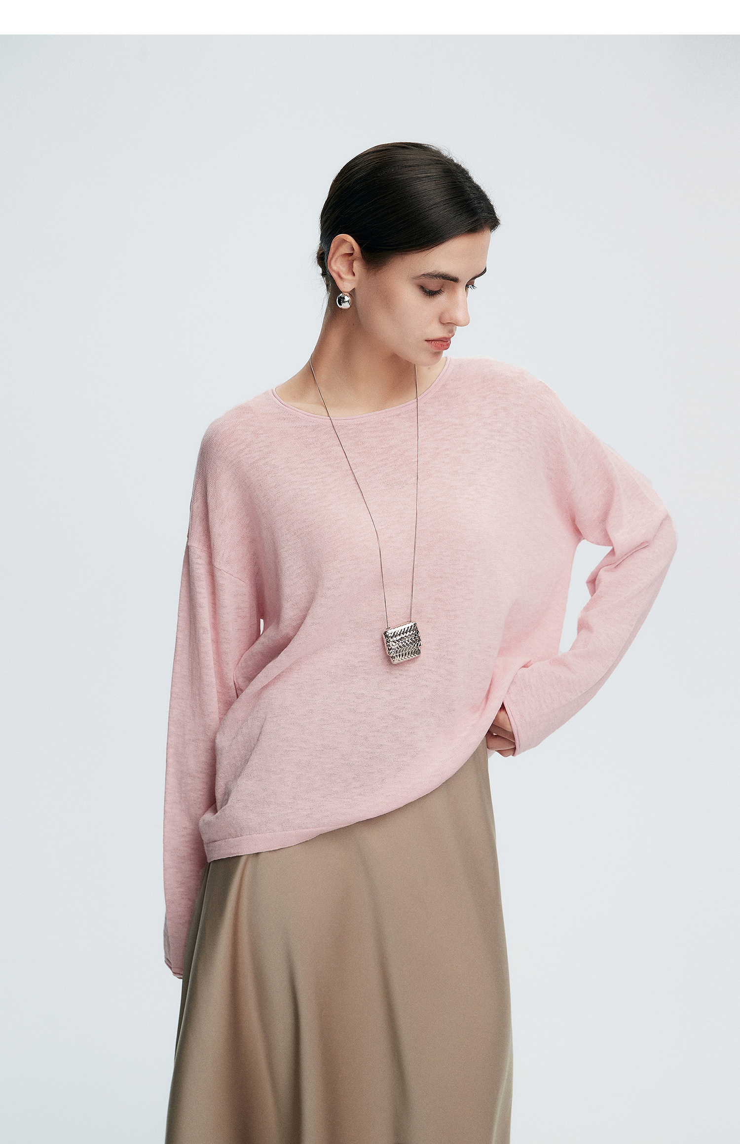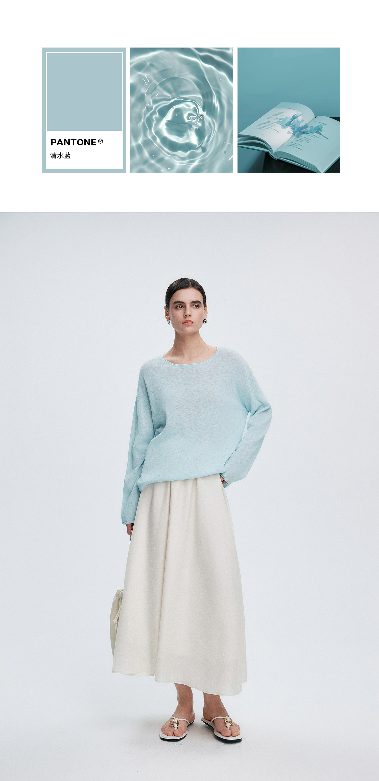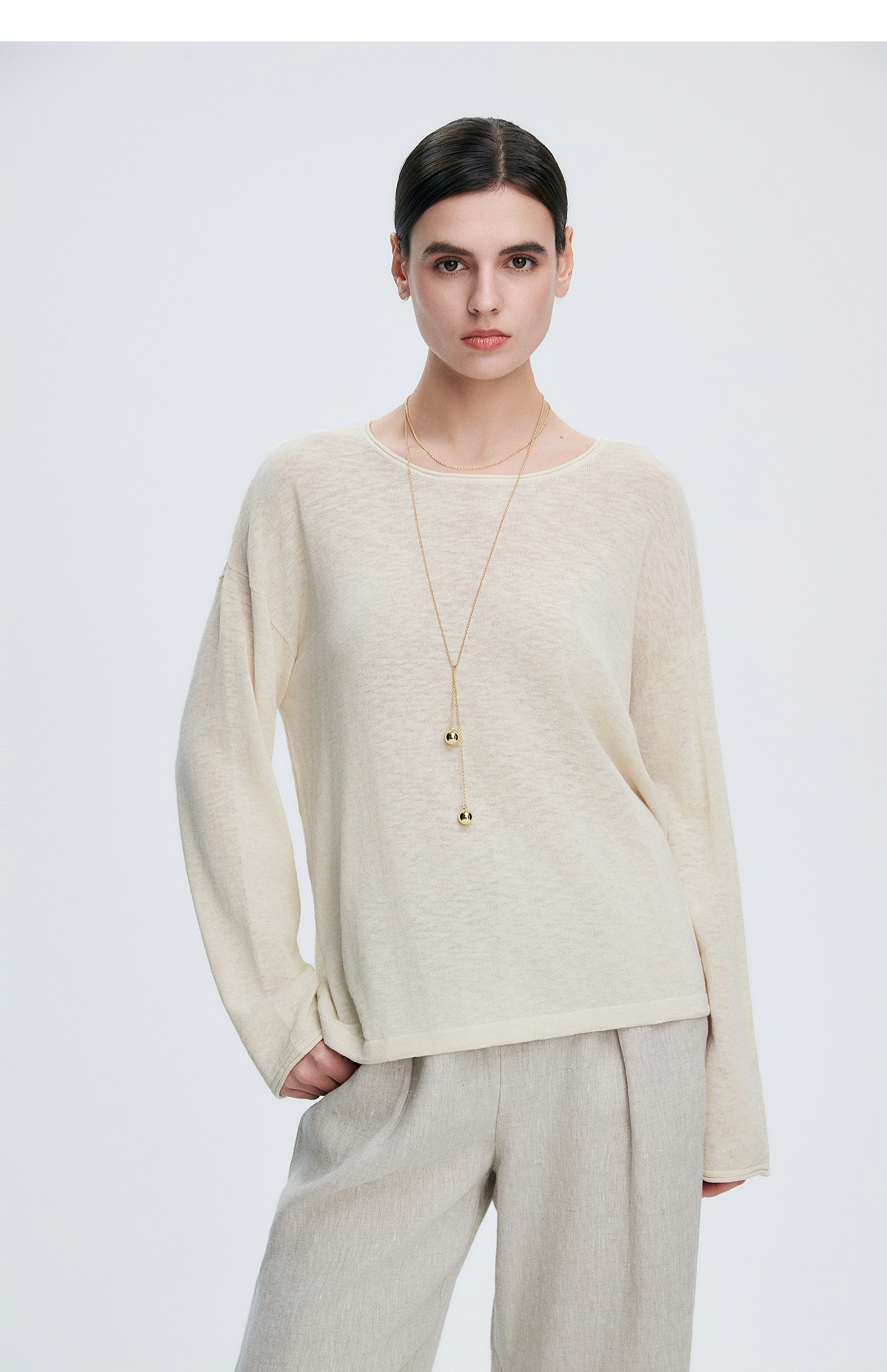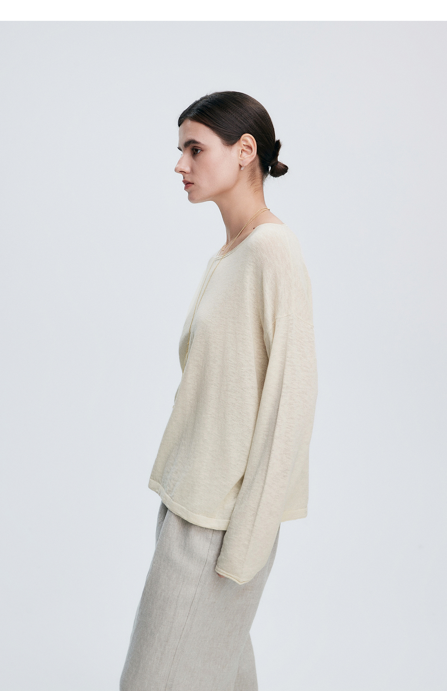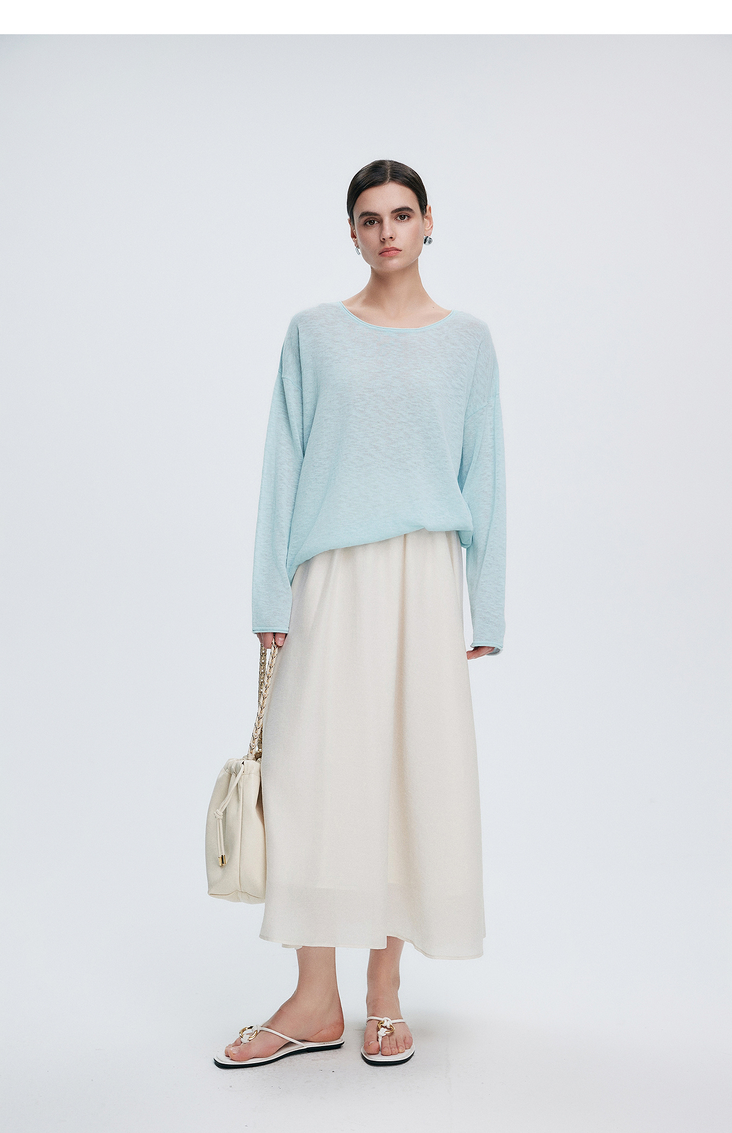 棉仓366601027-25春夏圆领长袖窄肩设计简约时髦感T恤