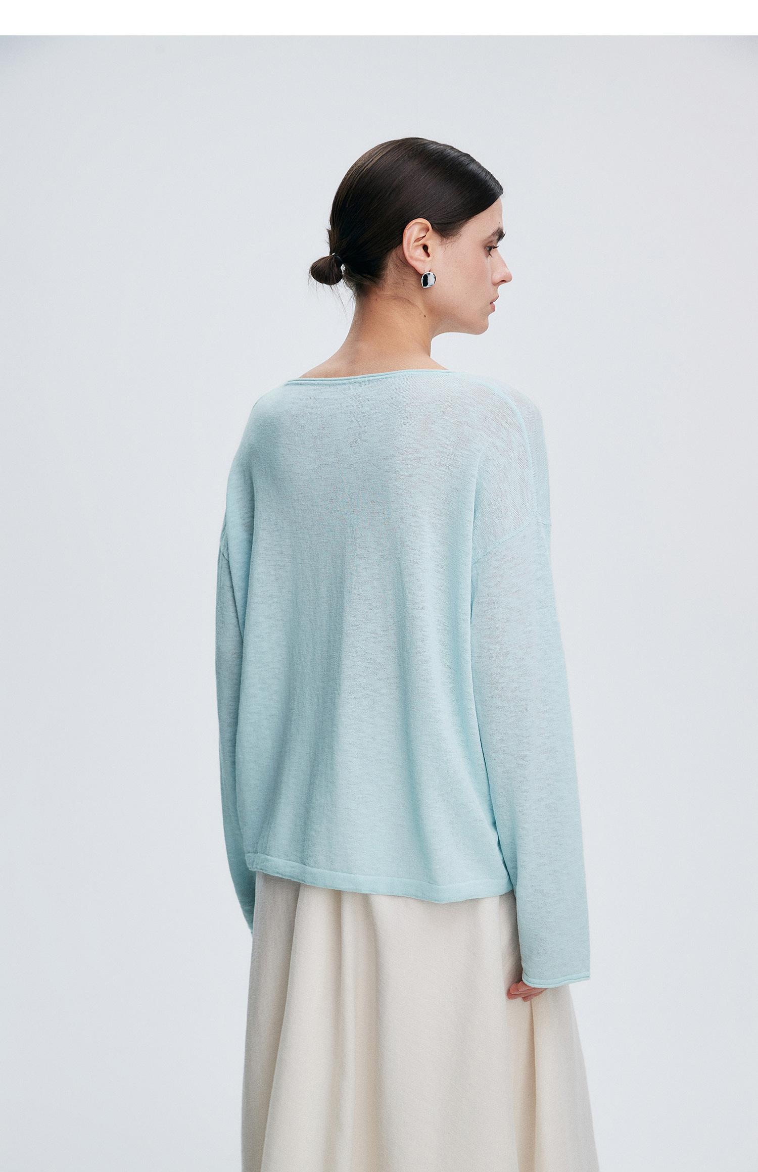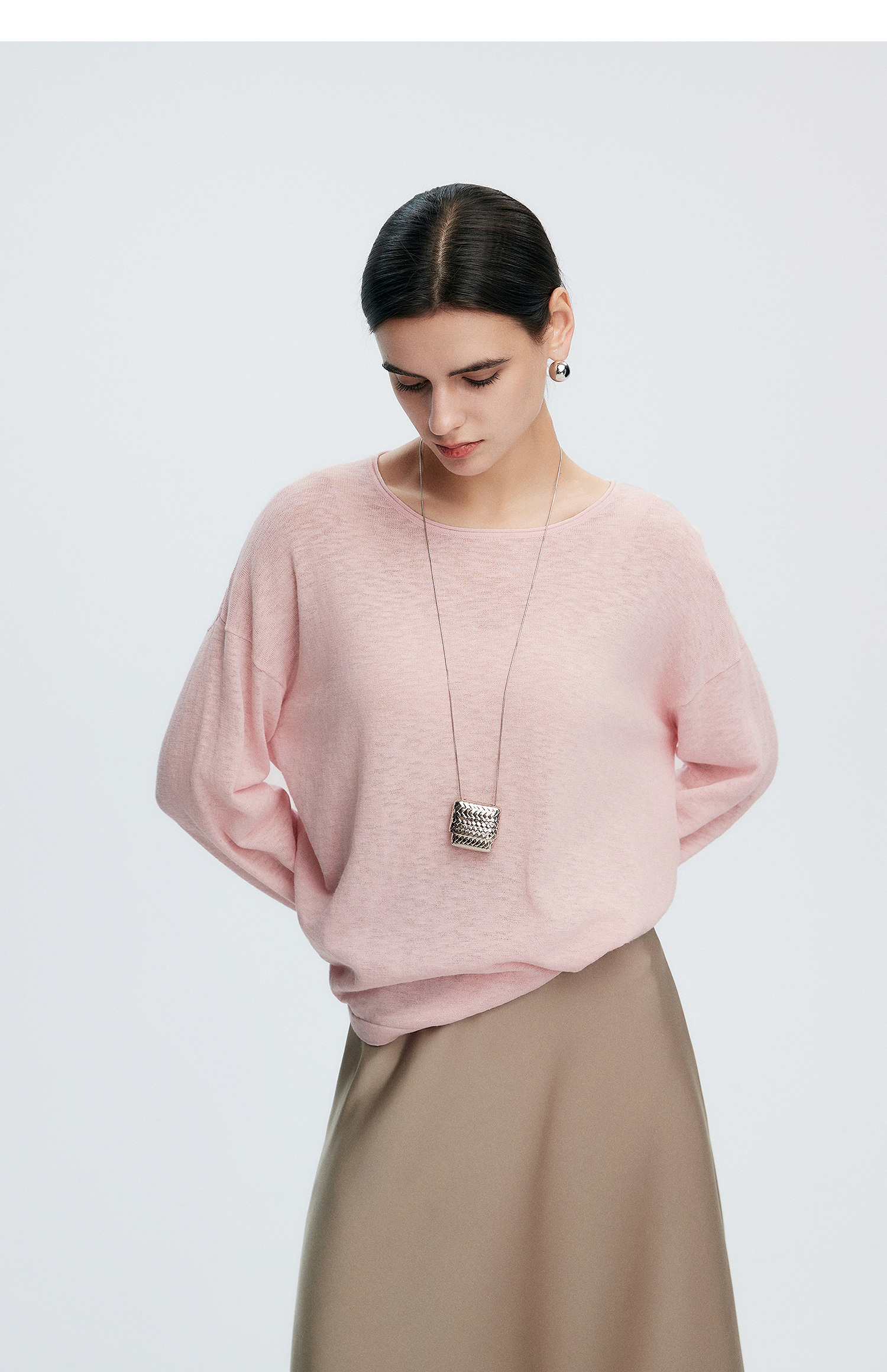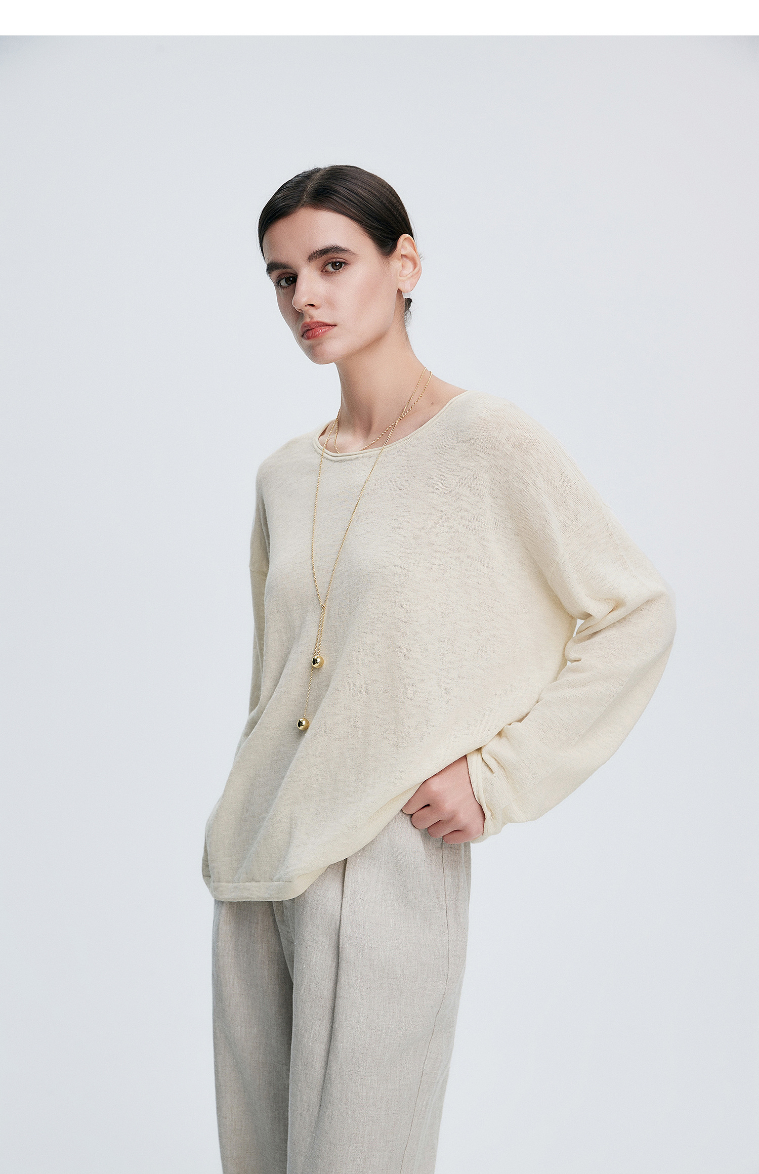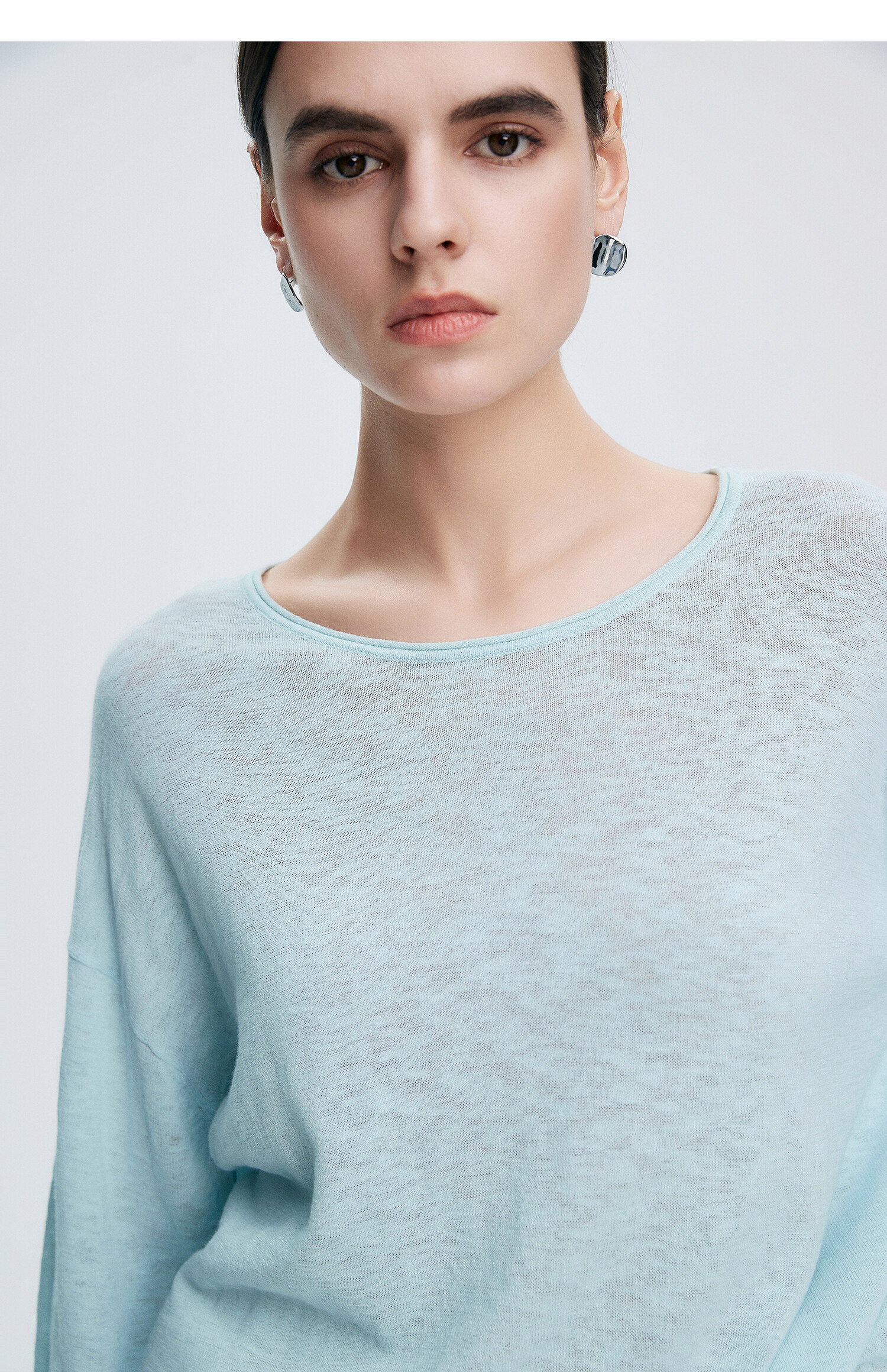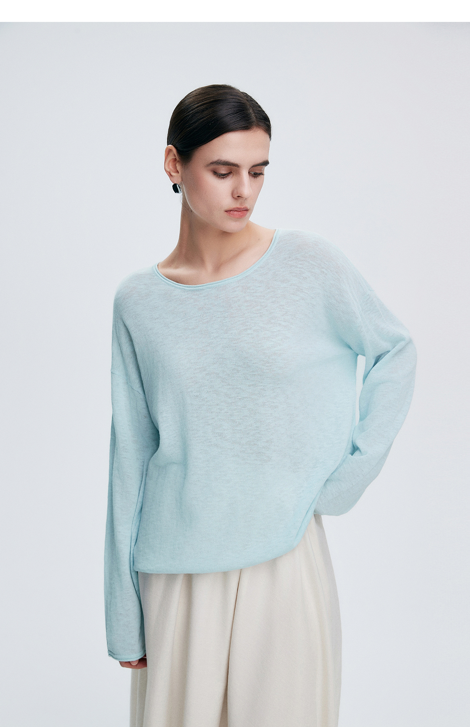 棉仓366601027-25春夏圆领长袖窄肩设计简约时髦感T恤