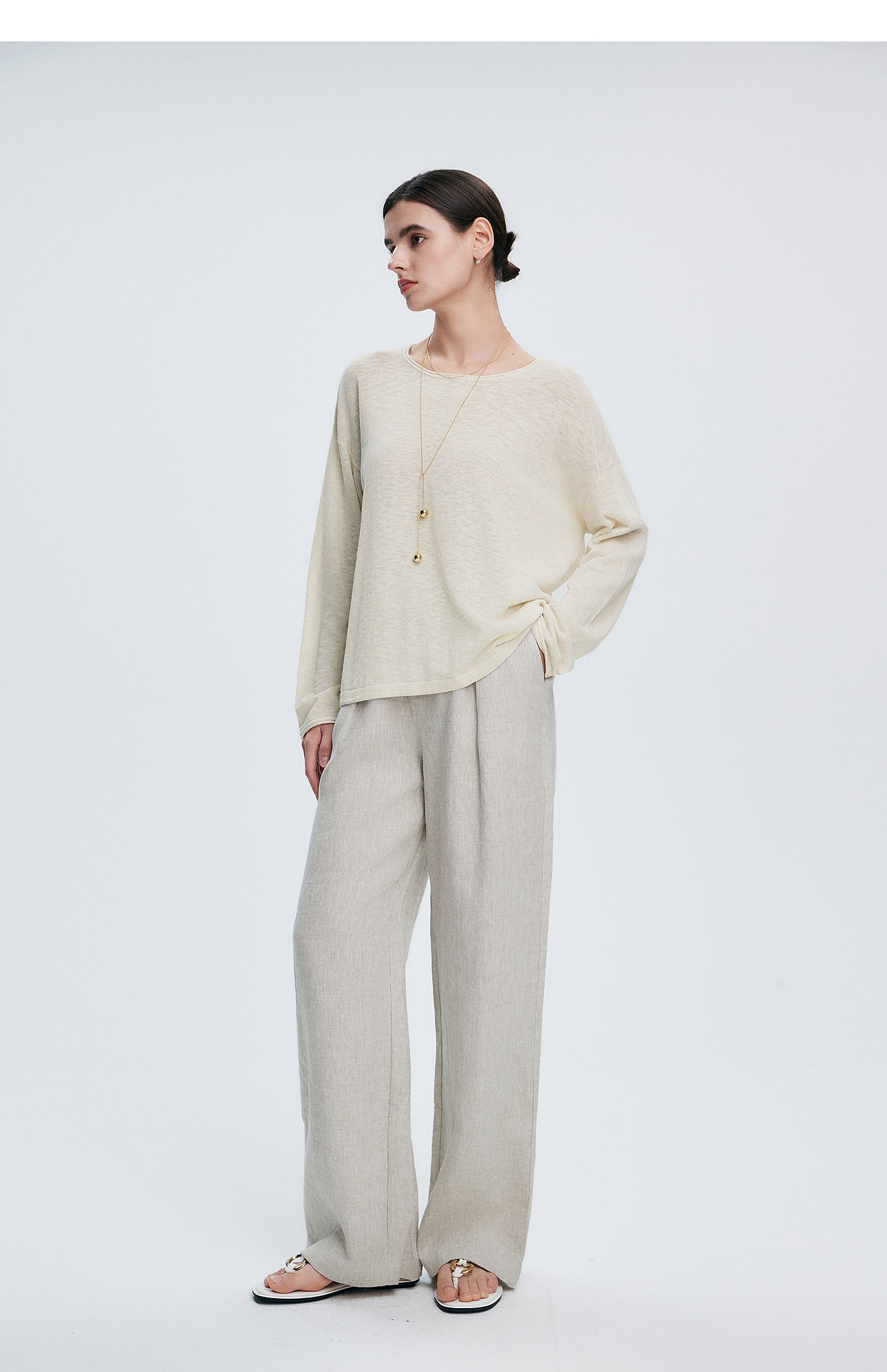 棉仓356801001 -法国罗纹微宽松长袖T恤