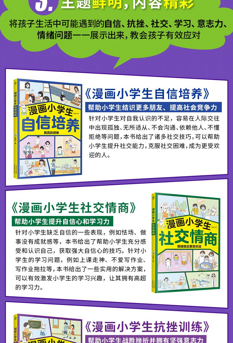 《漫画小学生社交情商+自信情商+抗挫情商》