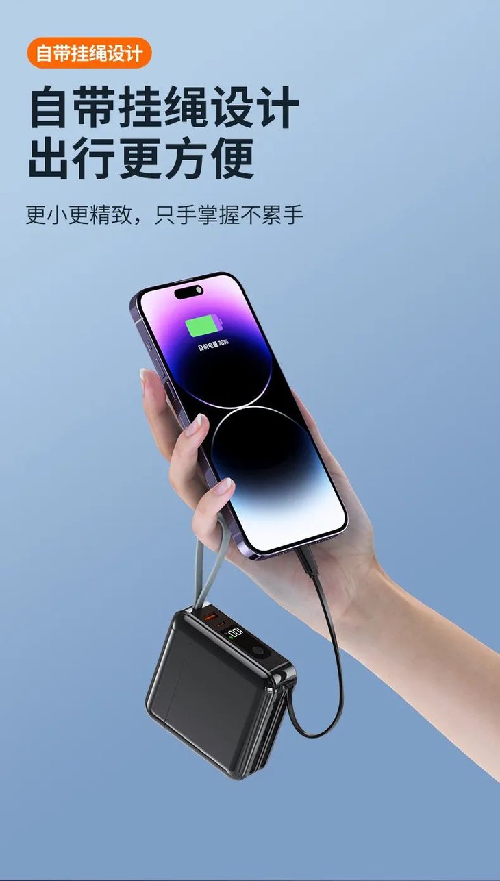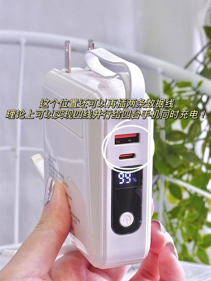 ✅不用带线,自有Type-C和苹果快充线,共四快充输出口