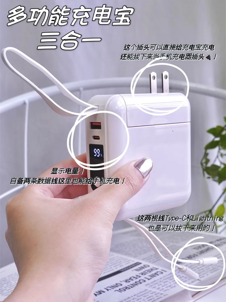 ✅插头+充电宝+数据线,既是分离式可拆卸,又是三合一合体的,就像一个“变形金刚”