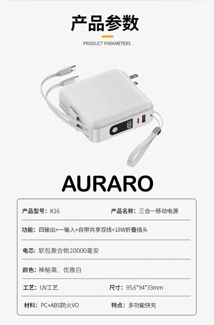 💥【Auraro三合一快充充电宝】“以一台顶三台,以一充四”!!