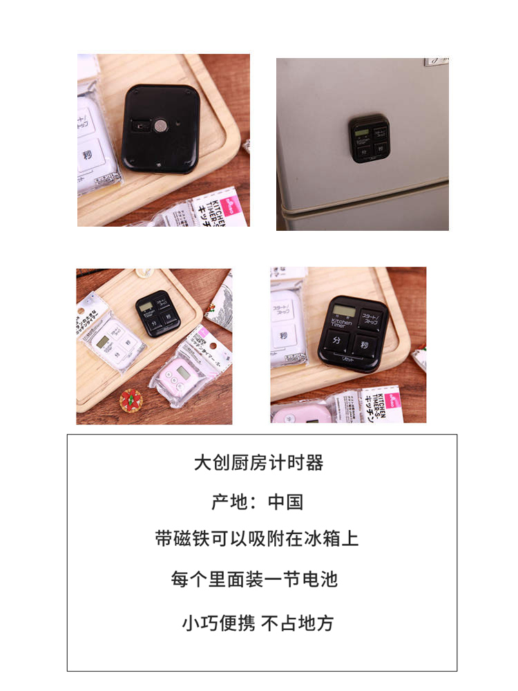 大创Daiso带磁铁的厨房用计时器磁吸定时器黑色大按钮