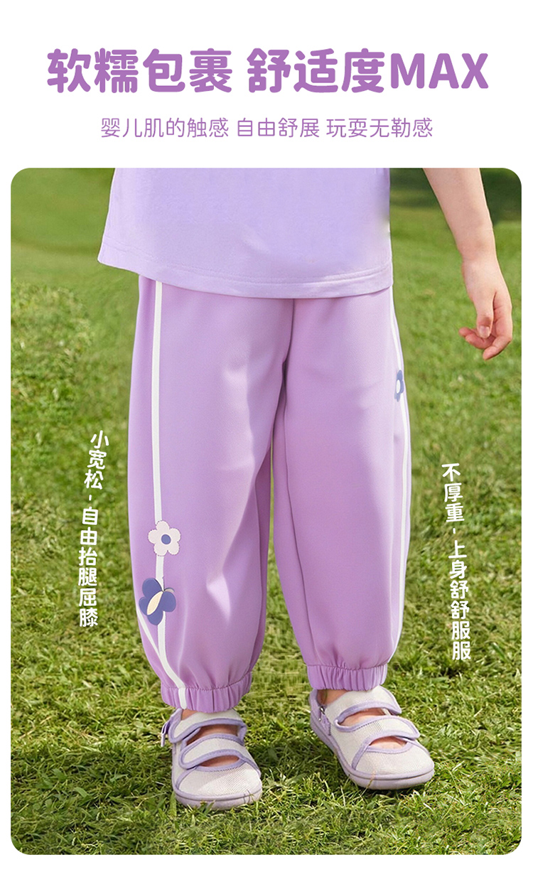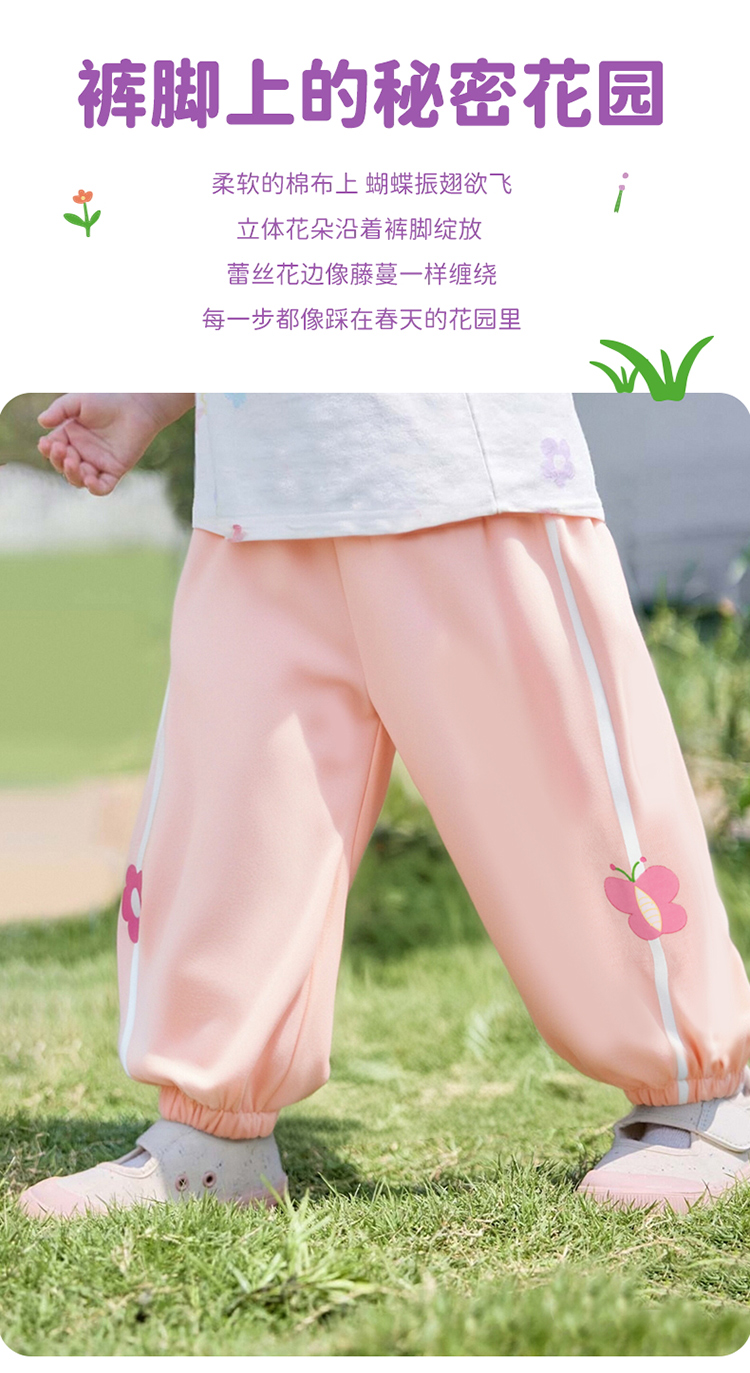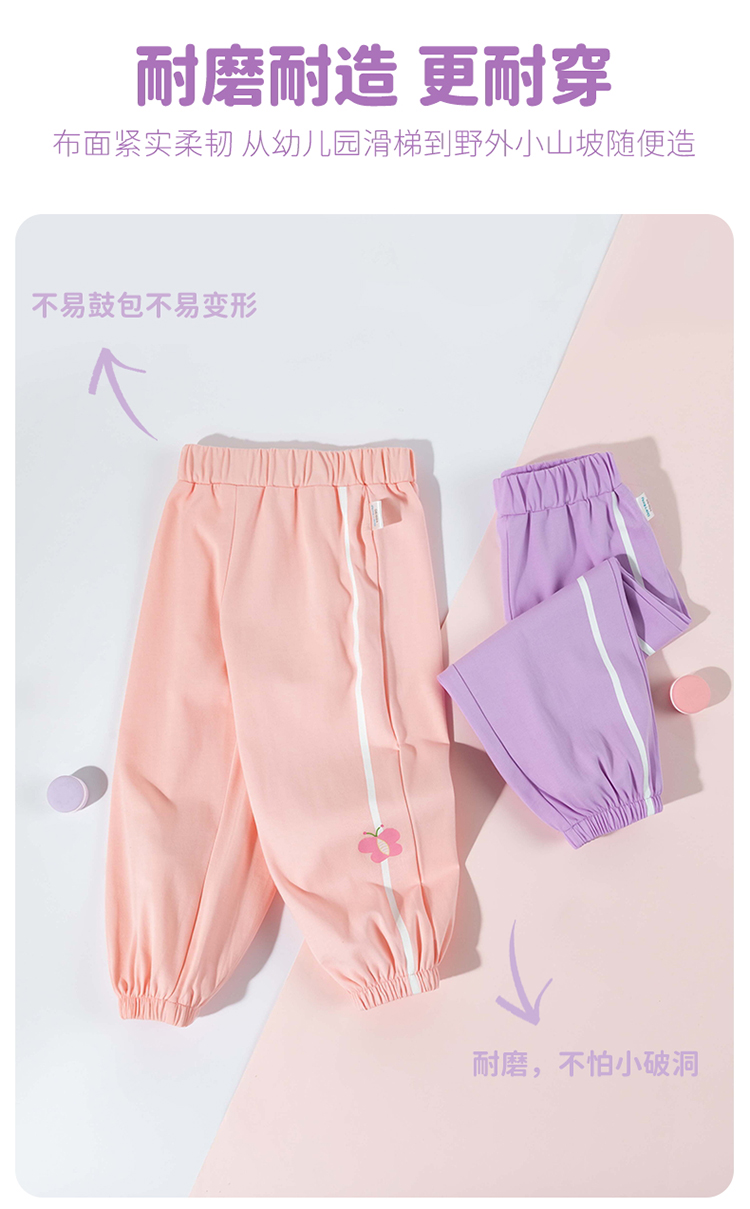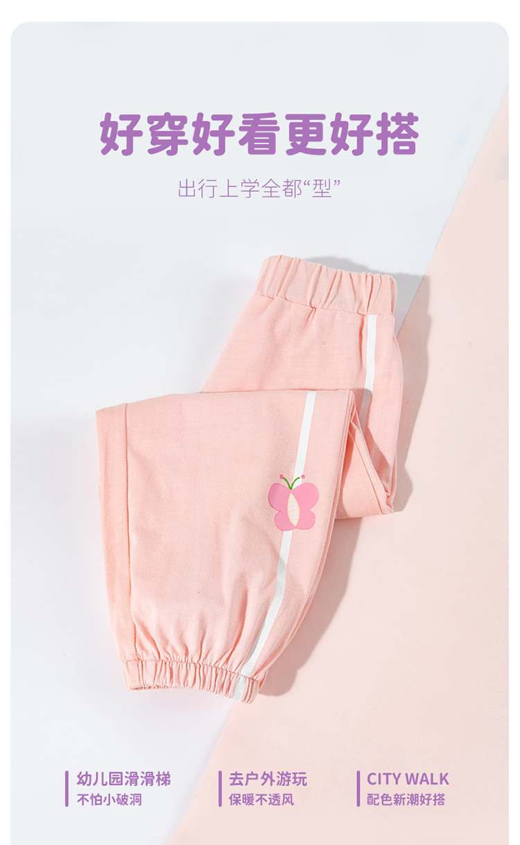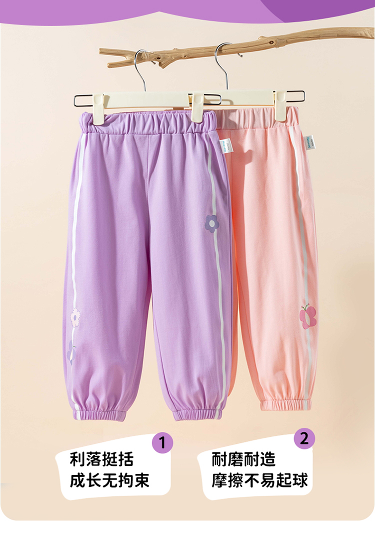 贝贝怡春秋新款儿童休闲裤女童百搭束脚裤撞色纯棉运动卫裤ZB3EK019