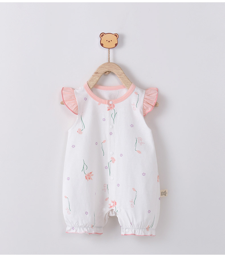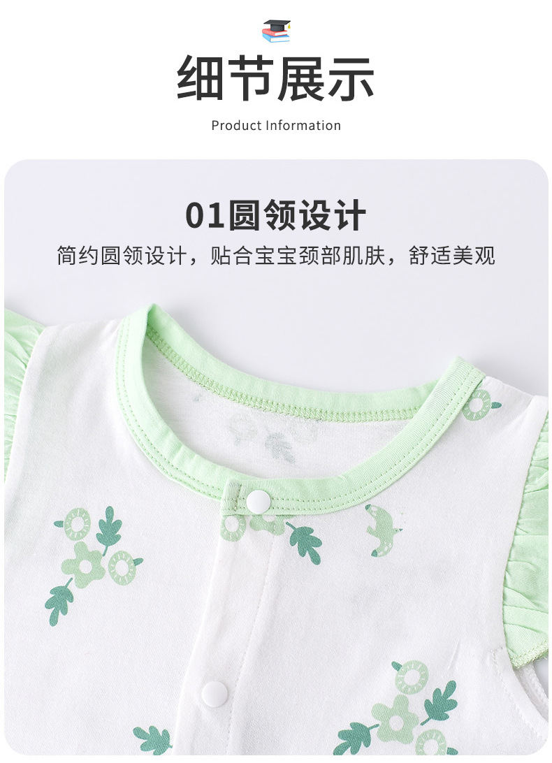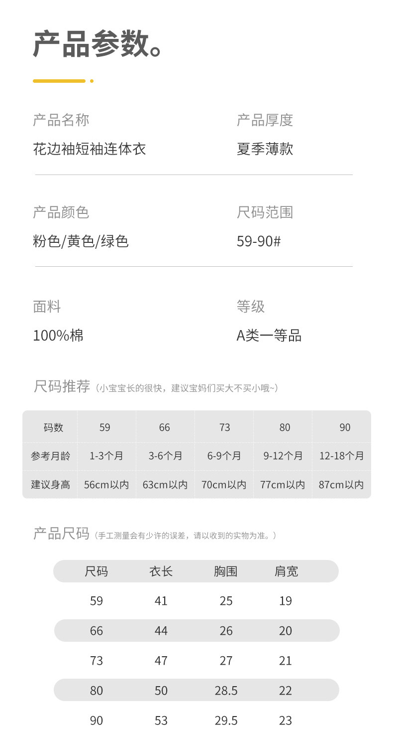 【夏季轻薄花边袖连体衣】a类纯棉女宝宝连体衣婴儿衣服薄睡衣出门服装夏季凉爽短袖爬爬服