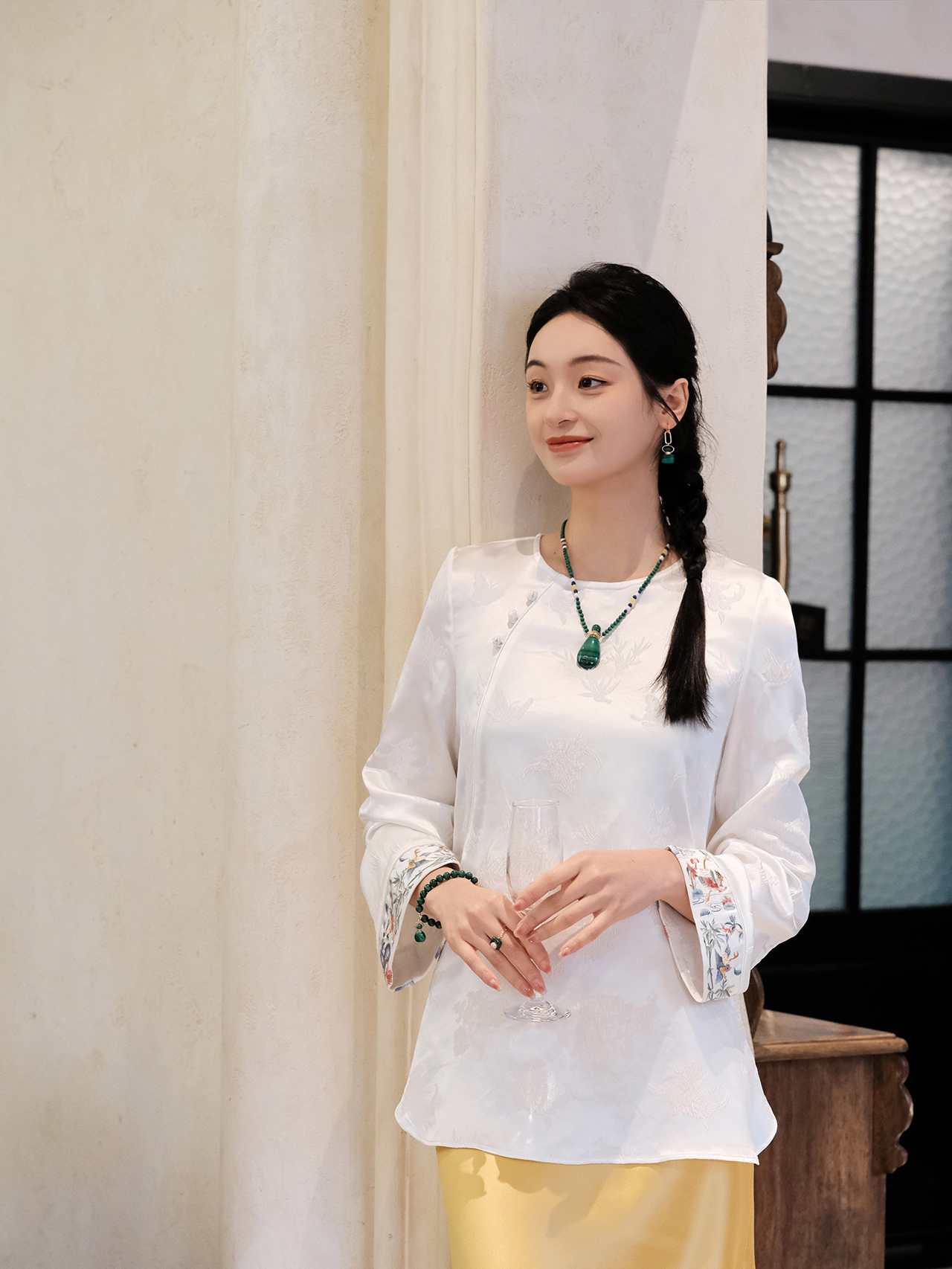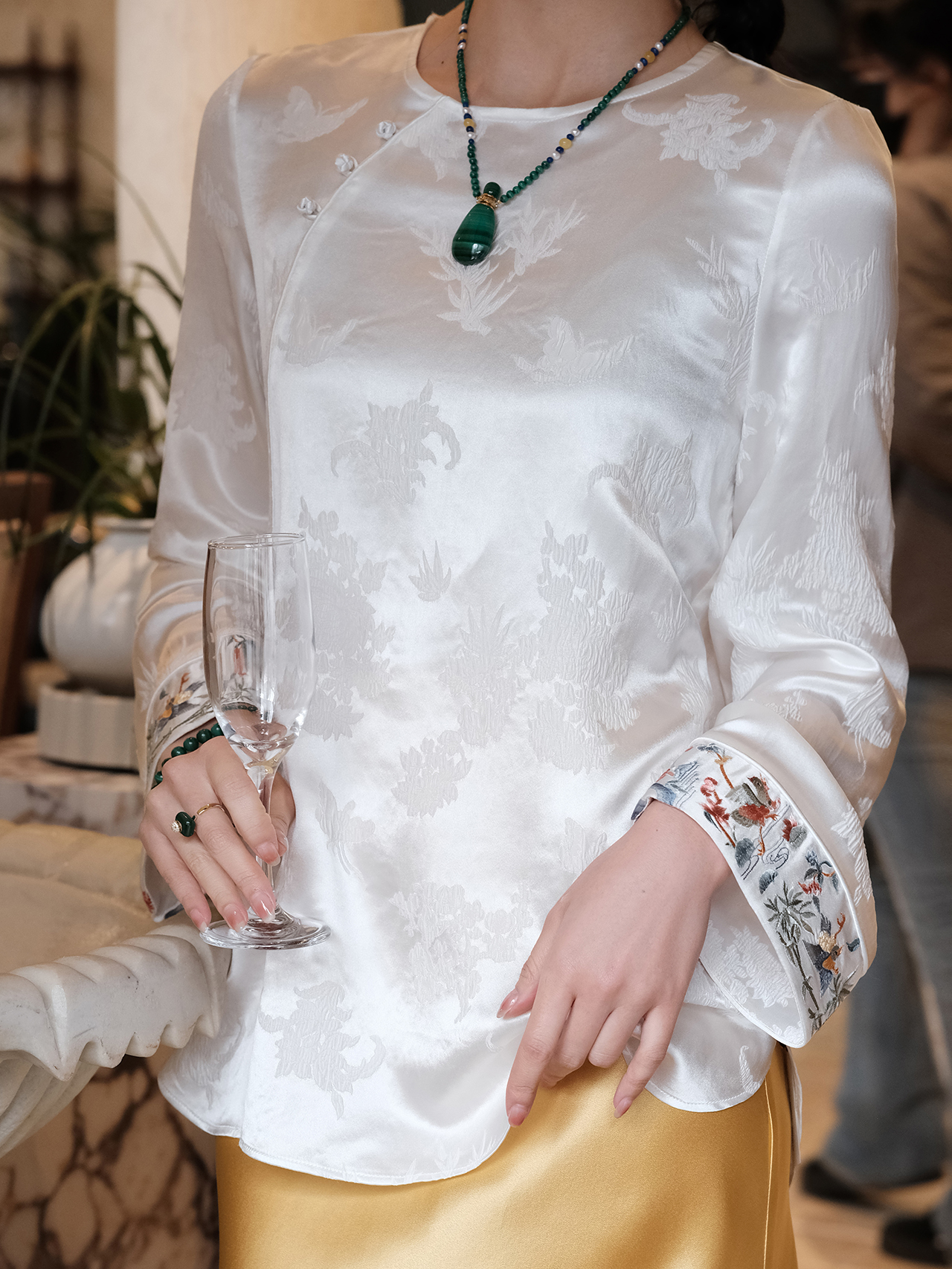 盛唐牡丹| 梅兰竹菊冠乐绉手推绣上衣-白色