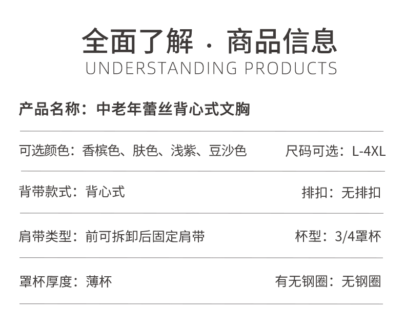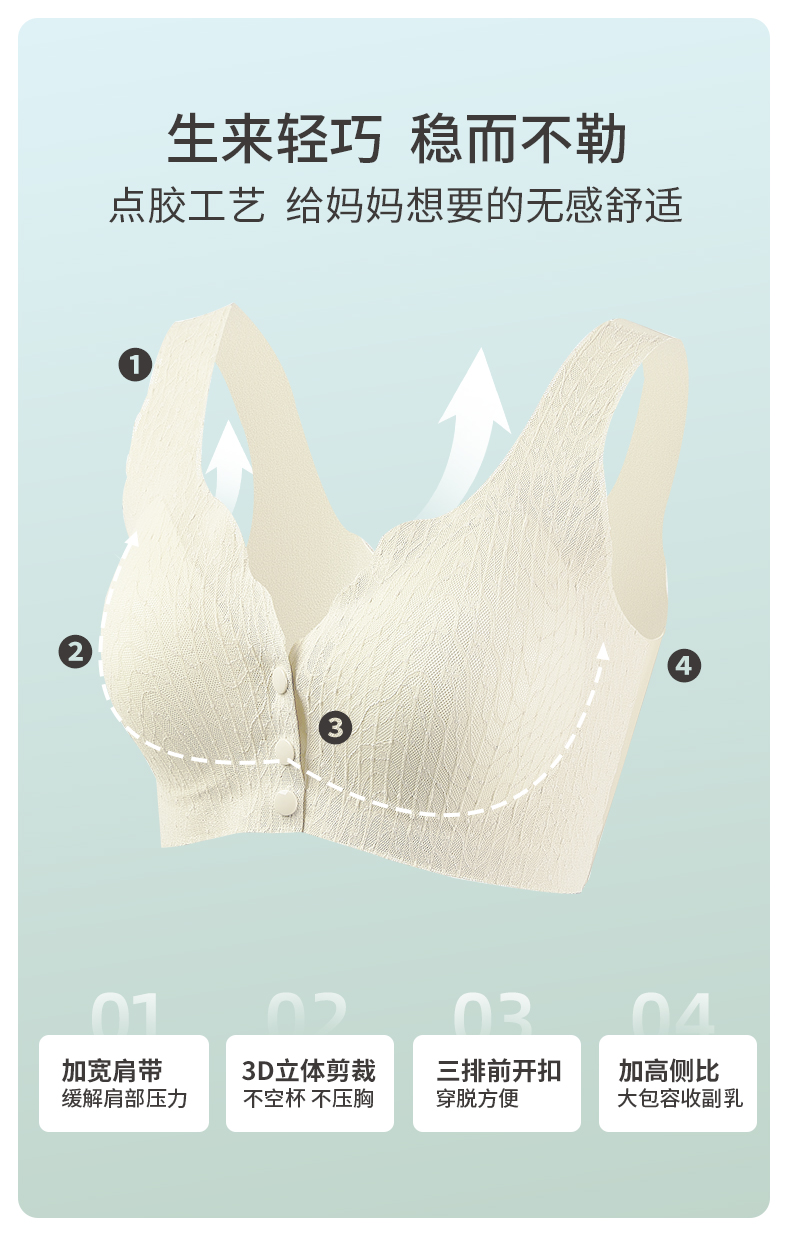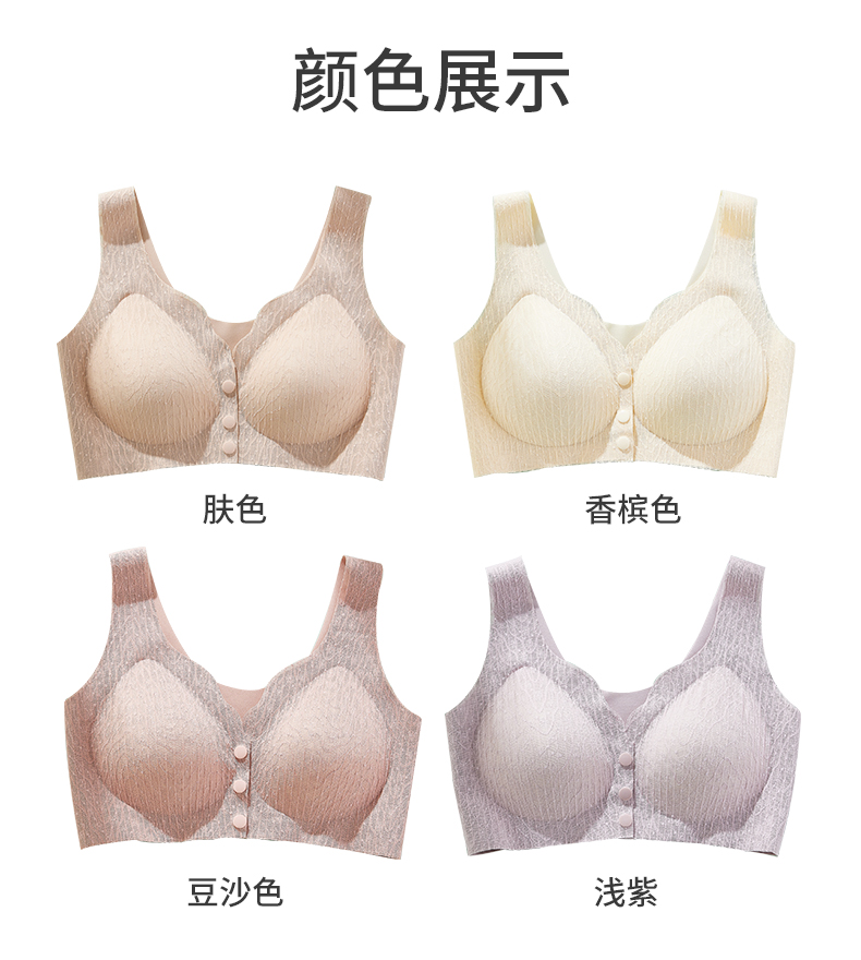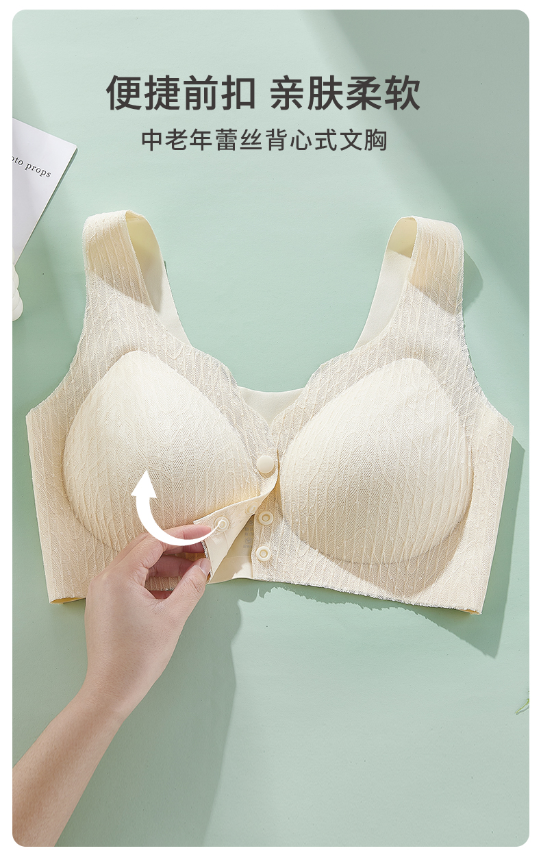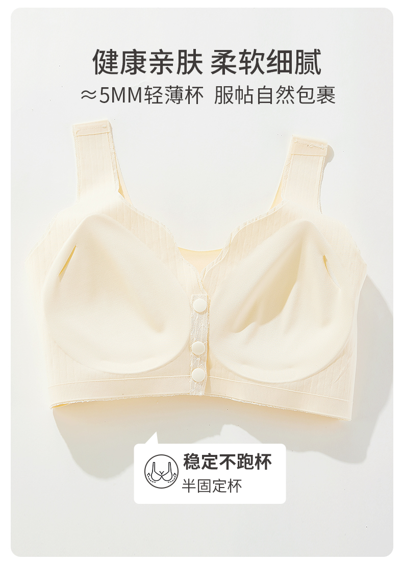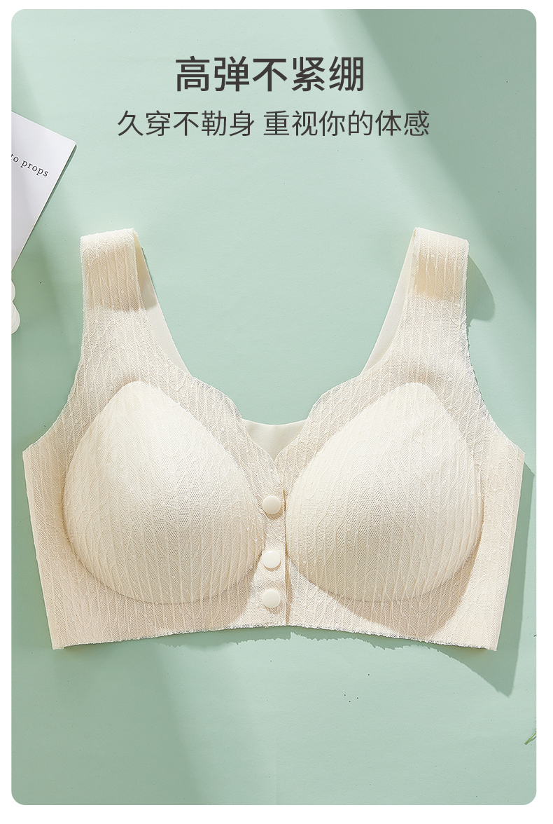 雅黛丽内衣女前扣背心式大码中老年妈妈款文胸无钢圈无痕薄款胸罩