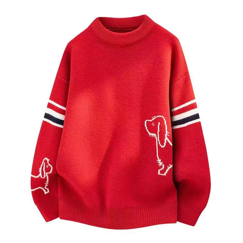 红白蓝拼接小狗圆领针织衫,冬季里的温暖拥抱!这款针织衫,颜色依旧是藏青、灰色主打色系,加上过年,年年红,红色系,低调中带着糕级感,简直是流行qian沿的代表!男女同款,情侣间搭配也是绝 佳选择哦!新款格纹杠条设计,增添了层次感,让你的背部看起来更挺拔。独特的设计,不仅增加了时尚感,还非常实用,轻松打造出懒散又时髦的风格。。针织材质,触感柔软,穿在身上就像被温暖的阳光拥抱,冬天里的小确幸!这款针织衫,是你秋冬搭配的丸美选择!