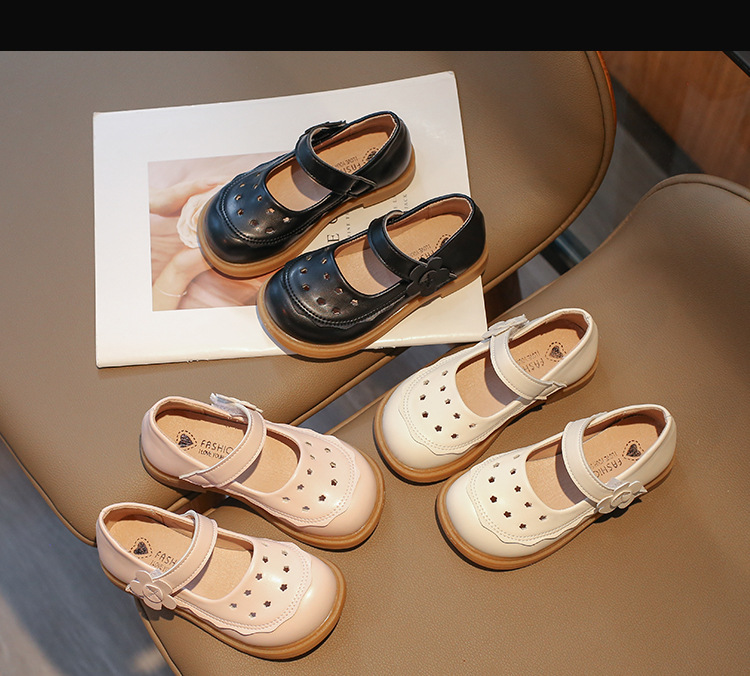 【春夏洋气镂空小皮鞋】新款小香风洞洞小皮鞋,魔术贴设计穿脱方便,柔韧鞋底耐磨防滑舒适透气外出外穿女童鞋QQ