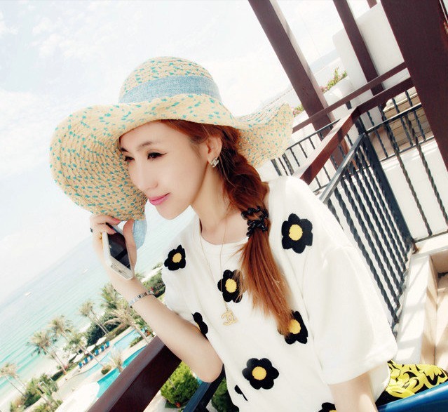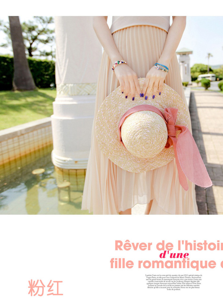 【服饰鞋包】B388韩版新款 春夏天女士沙滩防晒波浪大沿蝴蝶结拉菲草帽太阳帽