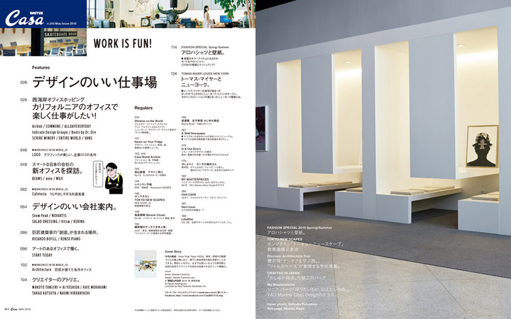 2018年5月刊聚焦工作环境,展示了从美国西海岸和日本部分先进企业的办公室设计,包括Airbnb 、Vans等等。想不出好的idea,考虑更新一下工作环境?