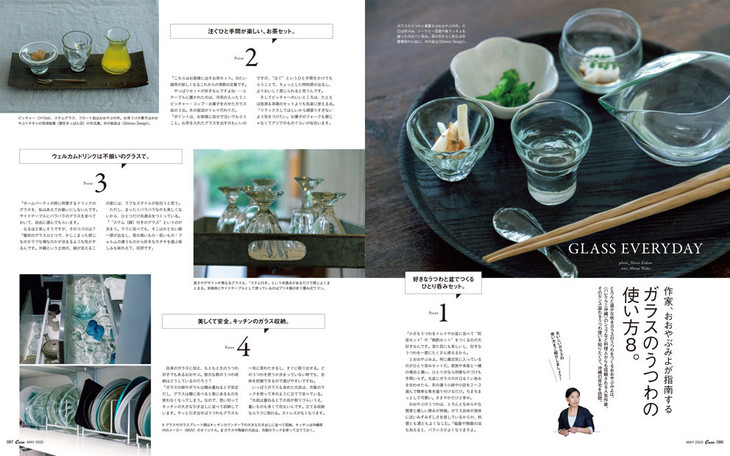 5月刊是有关器皿与料理的全新一辑,带领读者一起欣赏器皿作家的日常餐桌,认识玻璃器皿的使用方法,领略器皿的独特魅力。
