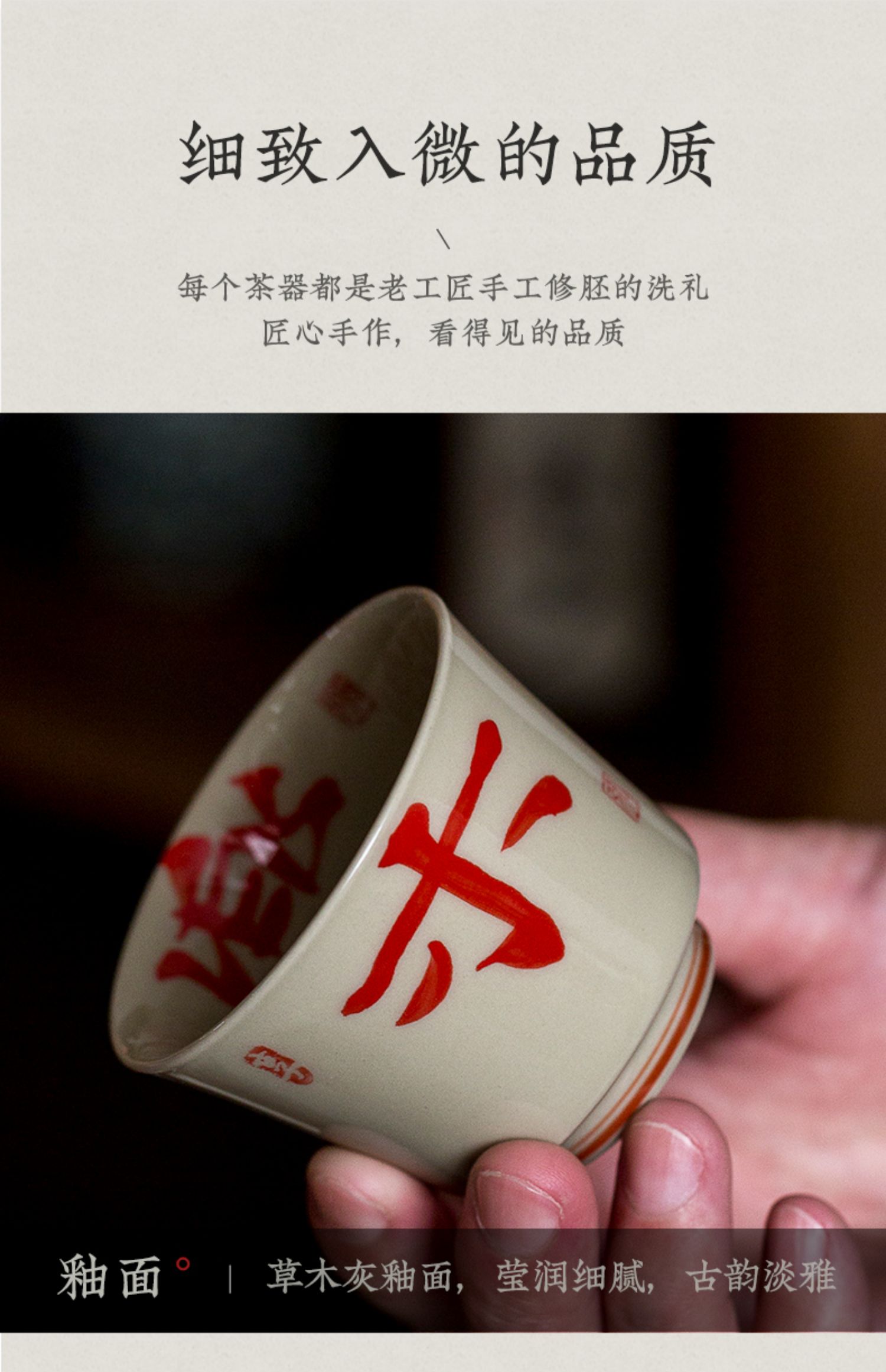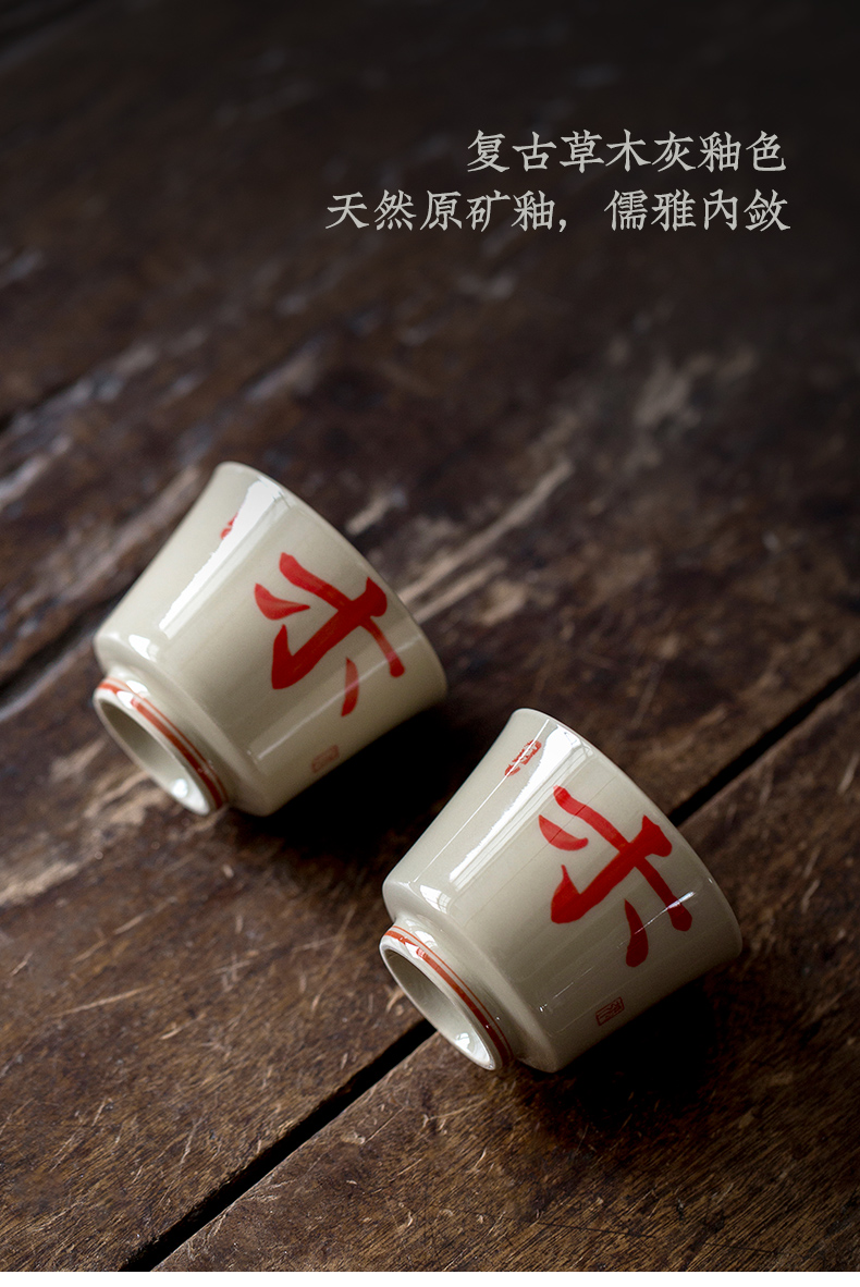 永利汇草木灰品茗杯喜乐绘画陶瓷茶杯个人专用茶杯功夫茶具茶杯