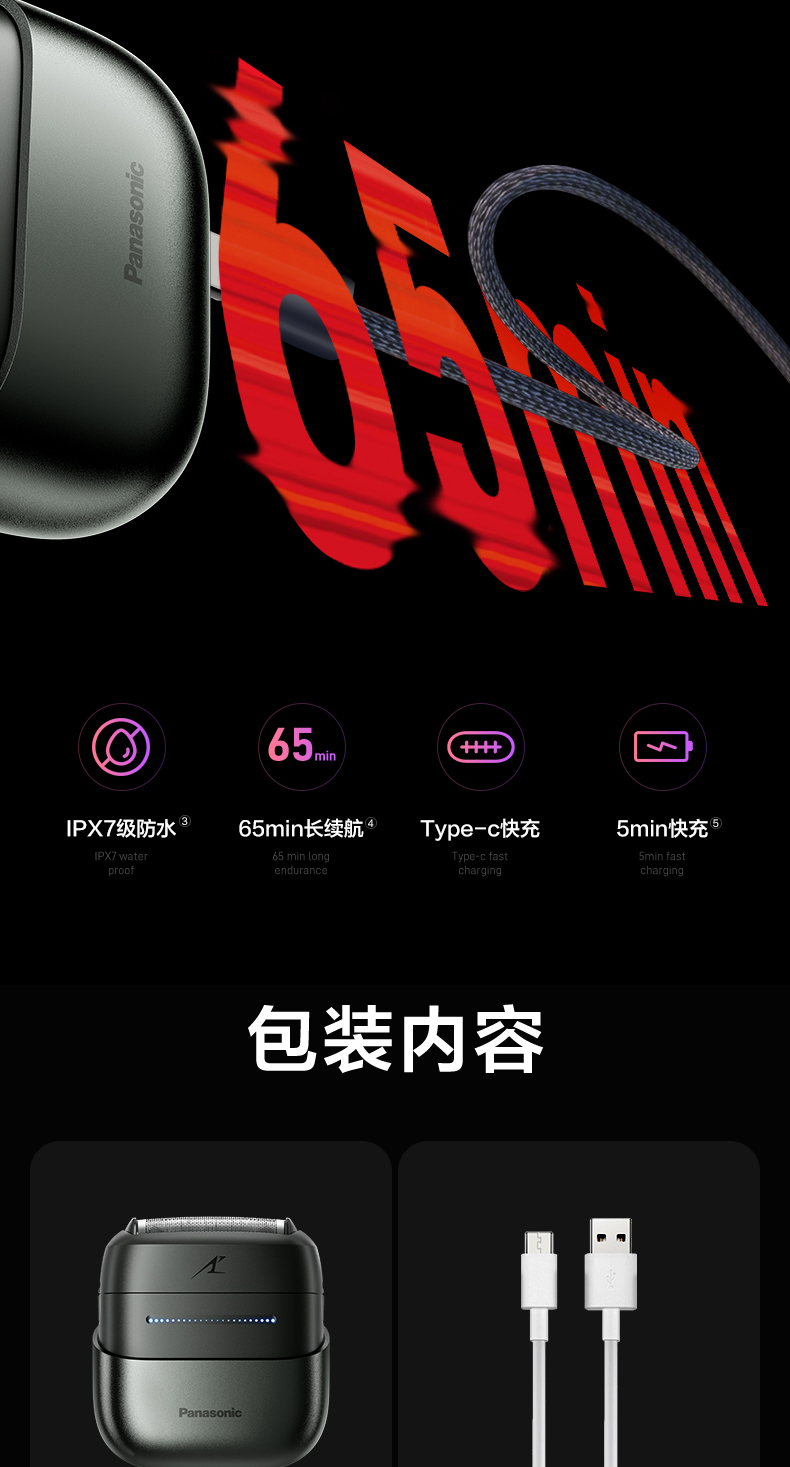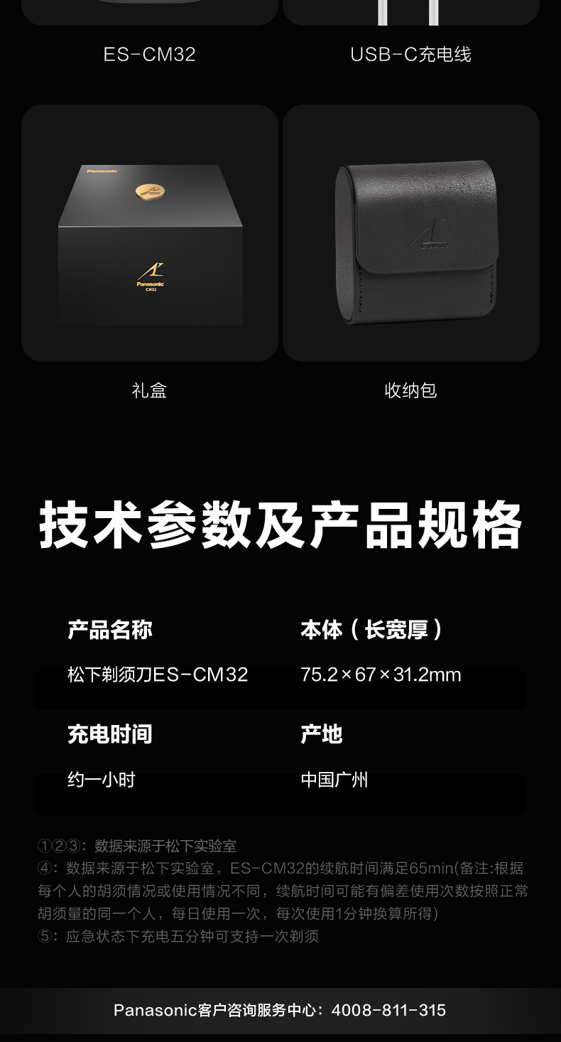 【云粉节】10楼 松下(Panasonic)小方盒UItra电动剃须刀旅行便携款电动刮胡刀进口三刀头 Type-c CM32灰色 吊牌价1599元 活动价1099元