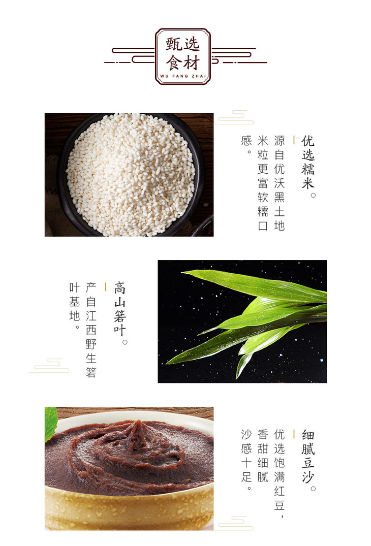 五芳斋 锁鲜润香豆沙鲜粽 豆沙绵密清甜 米香自然融合 软糯拉丝不齁甜 100g*6