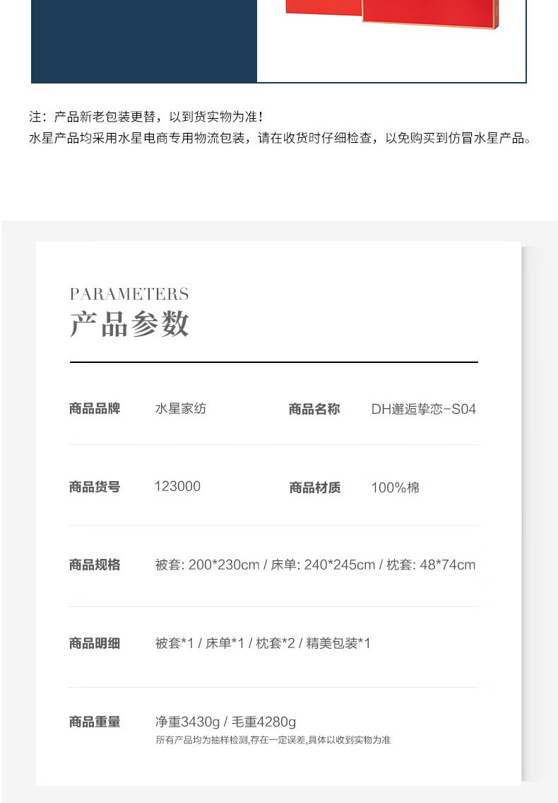 规格:1.5m床 被套:200*230cm、床单:240*245cm、枕套:48*74cm*2