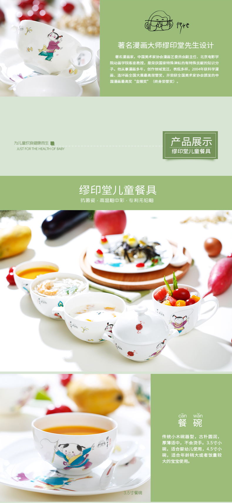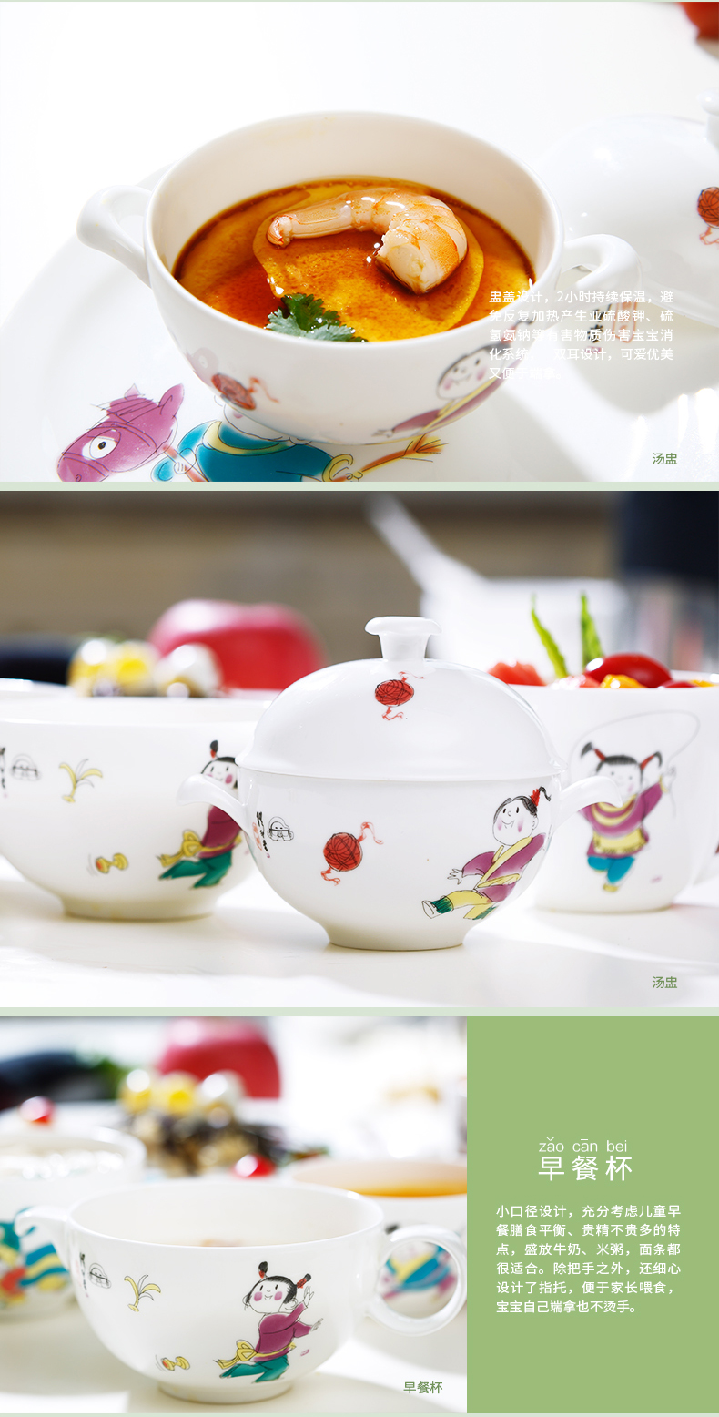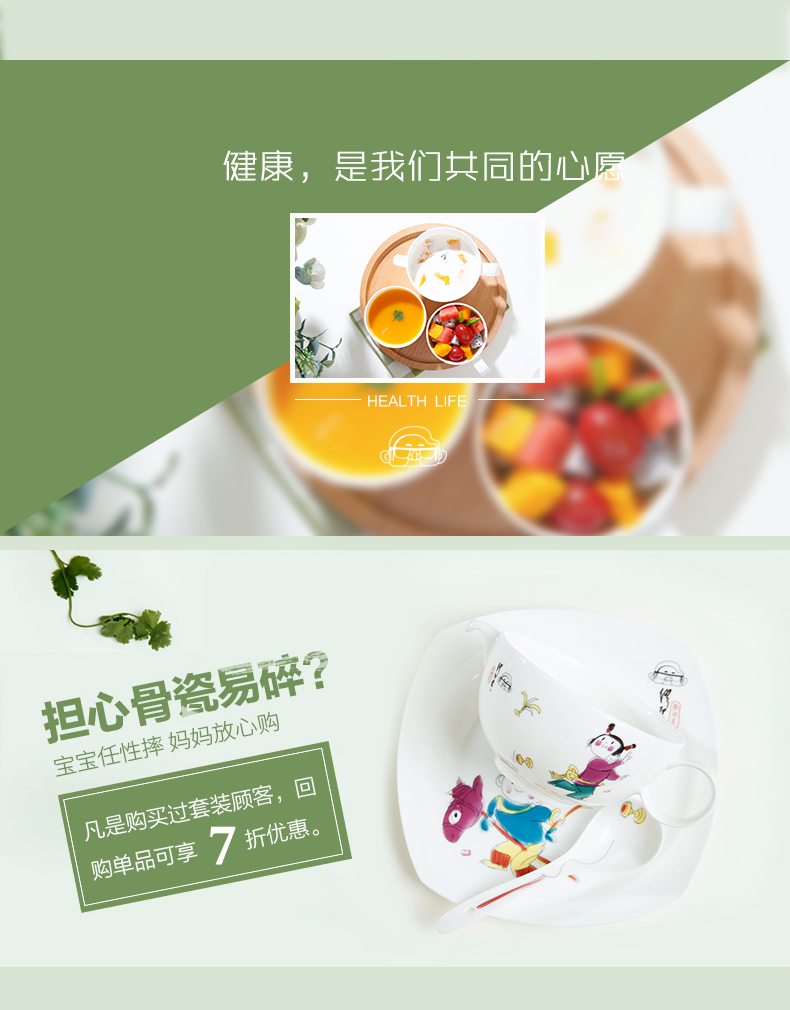 华光陶瓷 缪印堂儿童餐具 抗菌瓷骨瓷餐具套装 卡通宝宝餐具