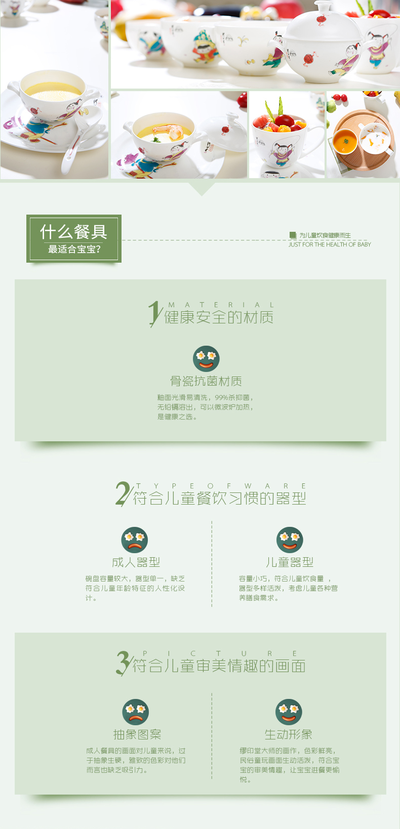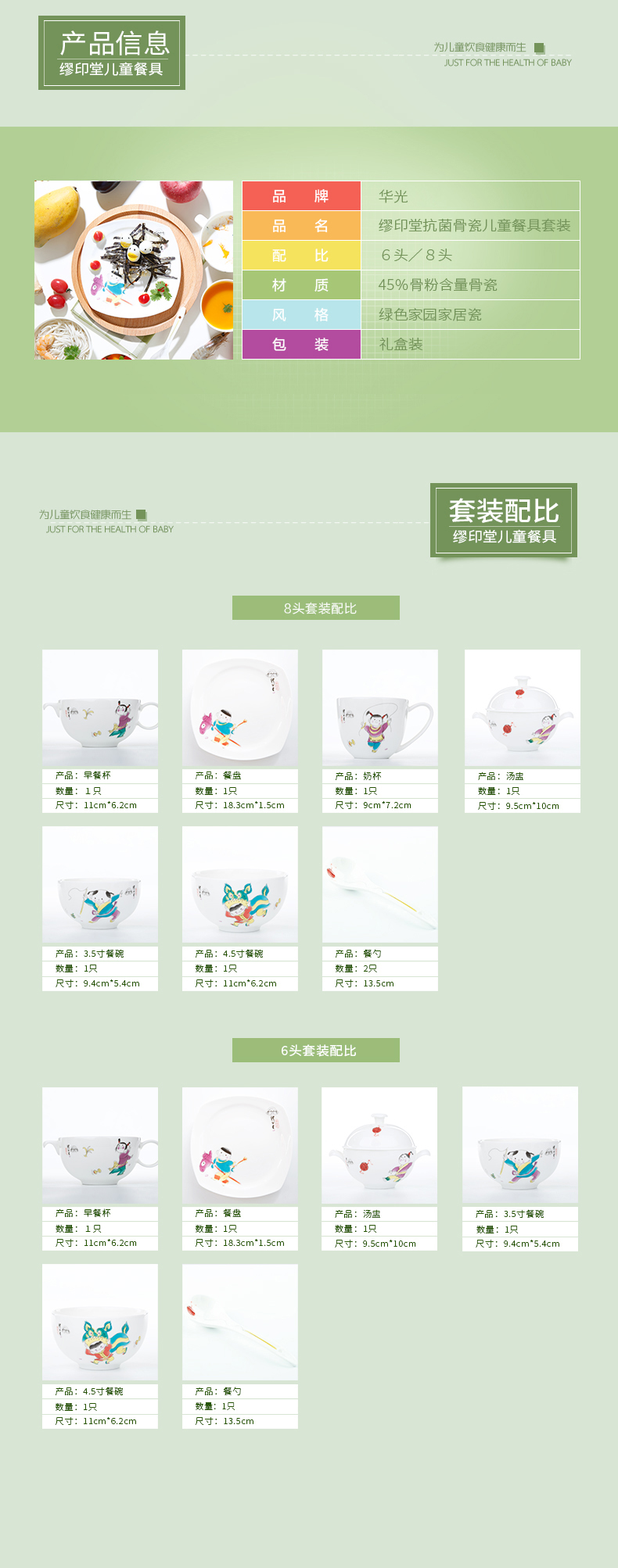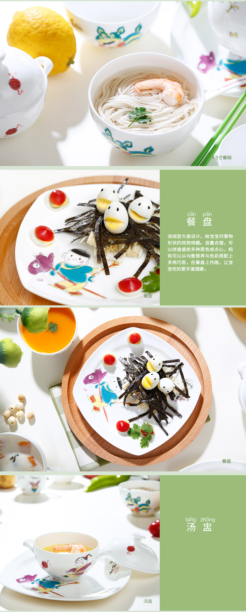 华光陶瓷 缪印堂儿童餐具 抗菌瓷骨瓷餐具套装 卡通宝宝餐具