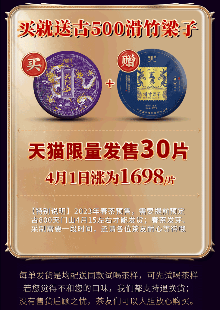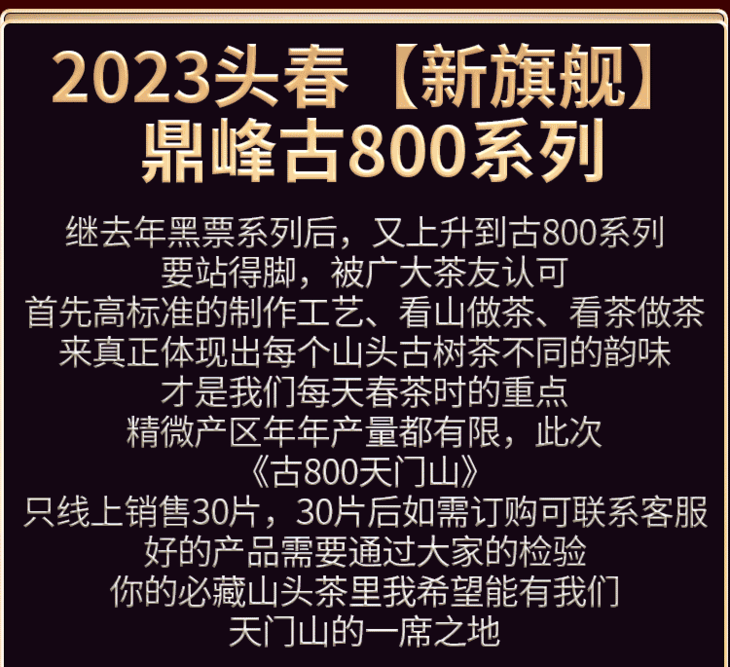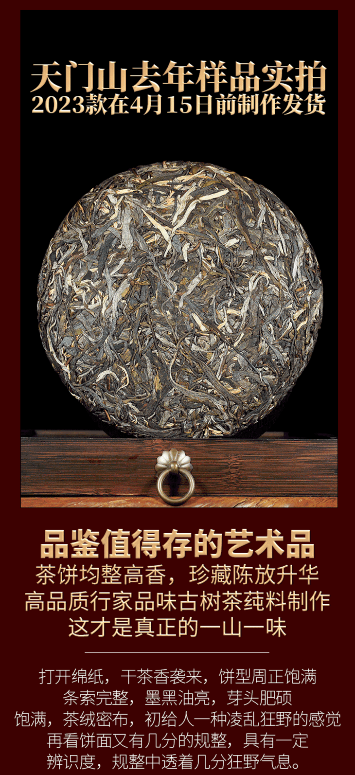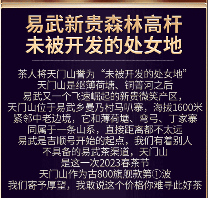 2023春茶 易武天门山古800古树头春茶普洱茶生茶357g饼茶茶叶