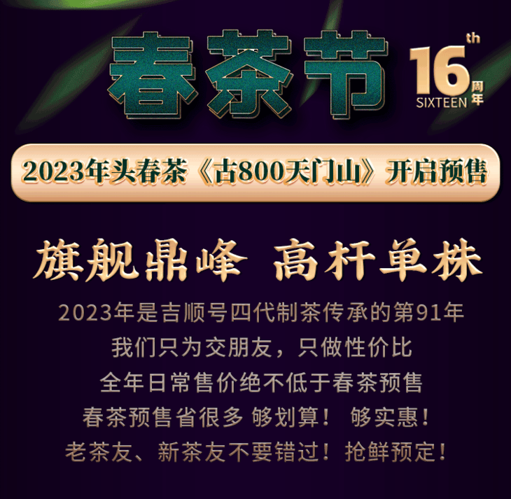 - 云南吉顺号茶业,专业云南普洱茶基地生产销售商。自有基地茶厂及运营仓储物流团队。