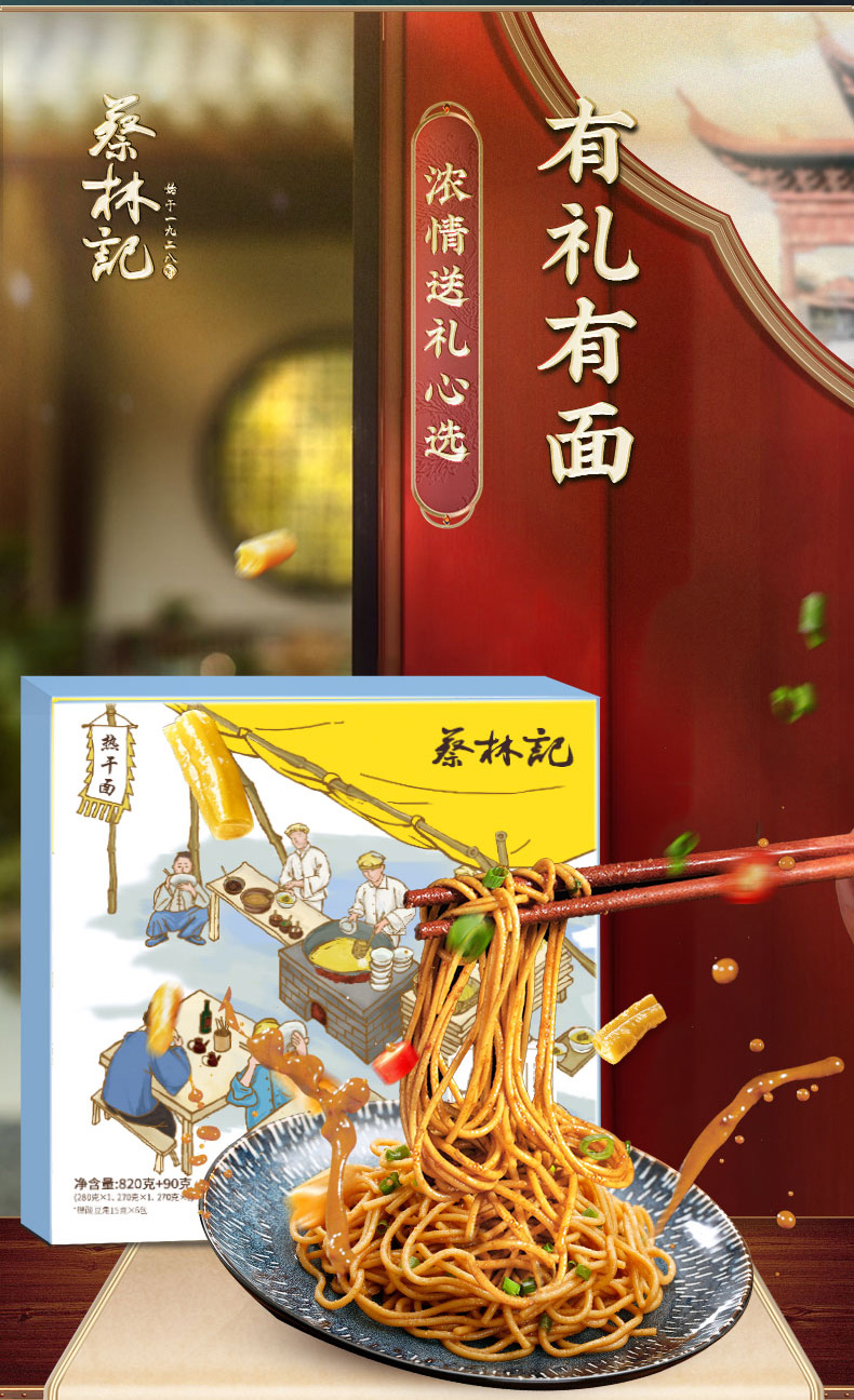 蔡林记武汉热干面伴手礼盒910g×2盒送人节日礼盒装 送礼品袋 湖北直发