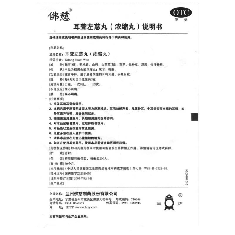 佛慈耳聋左慈丸浓缩丸 肝肾阴虚 治耳鸣耳聋药头晕目眩滋肾平肝药
