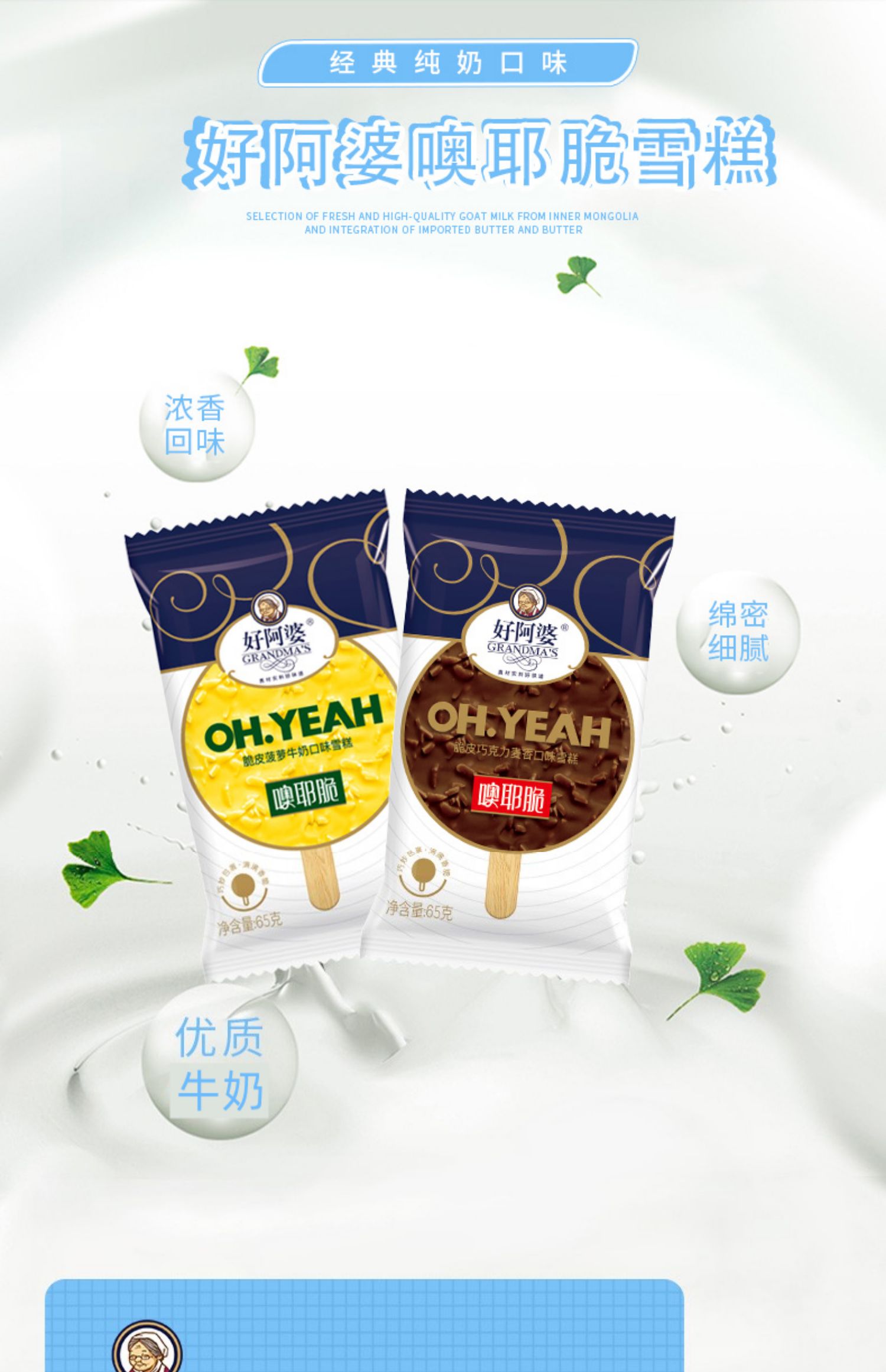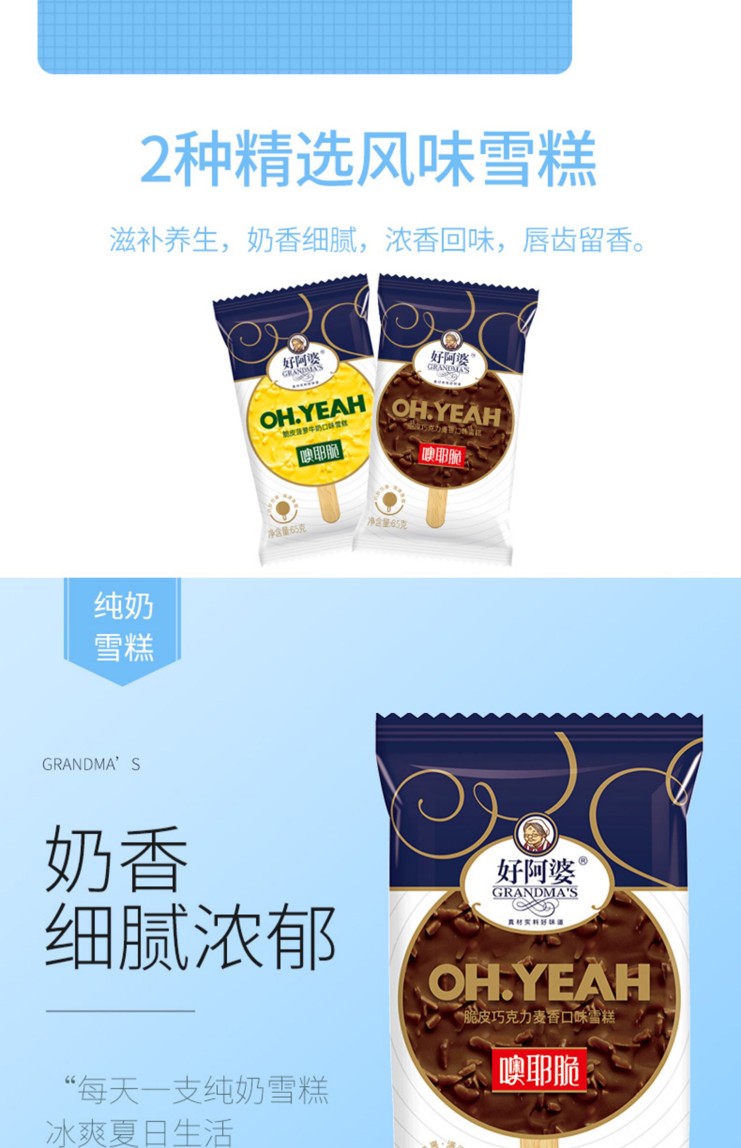 好阿婆噢耶脆雪糕脆皮巧克力麦香冰淇淋 网红冷饮冰棒 65g