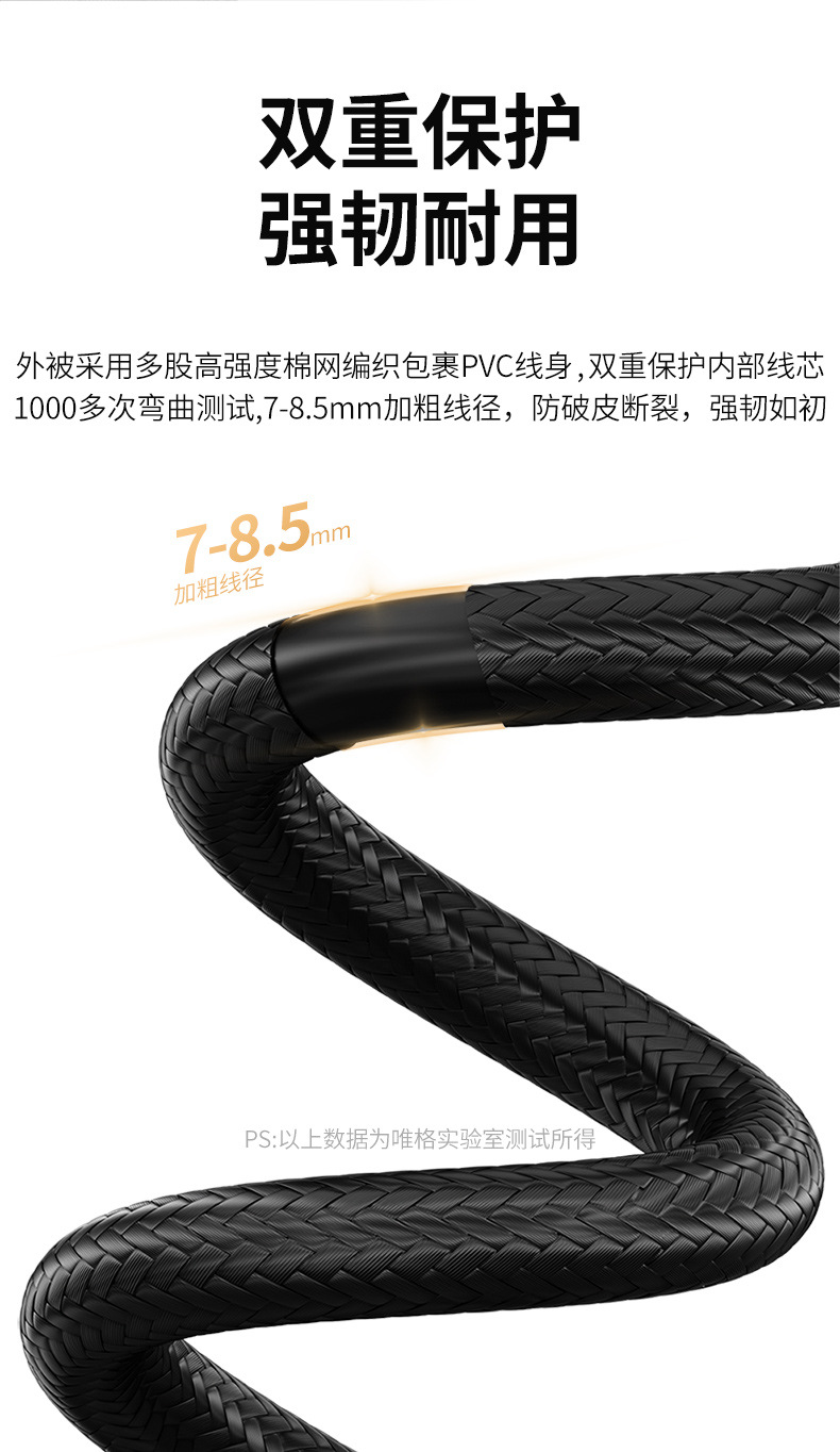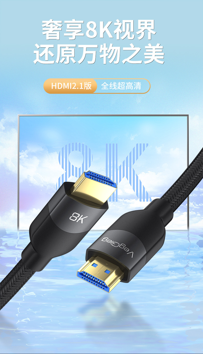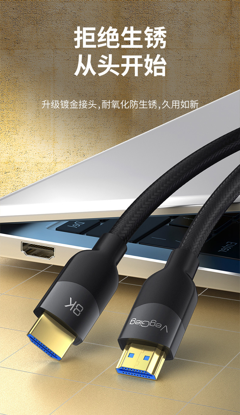 严选纯铜编织2.1hdmi5米高清线 PS5电脑显示器投影仪机顶盒连接视频线1根
