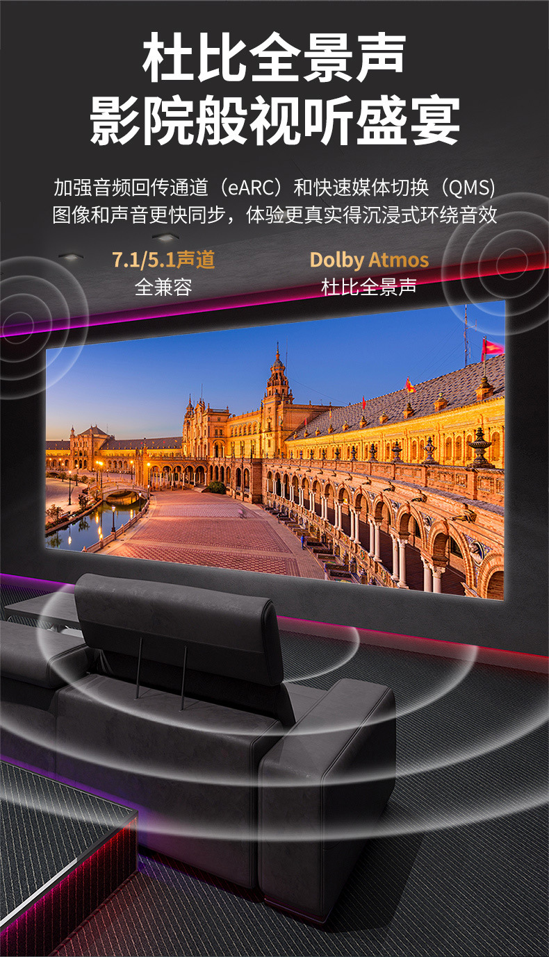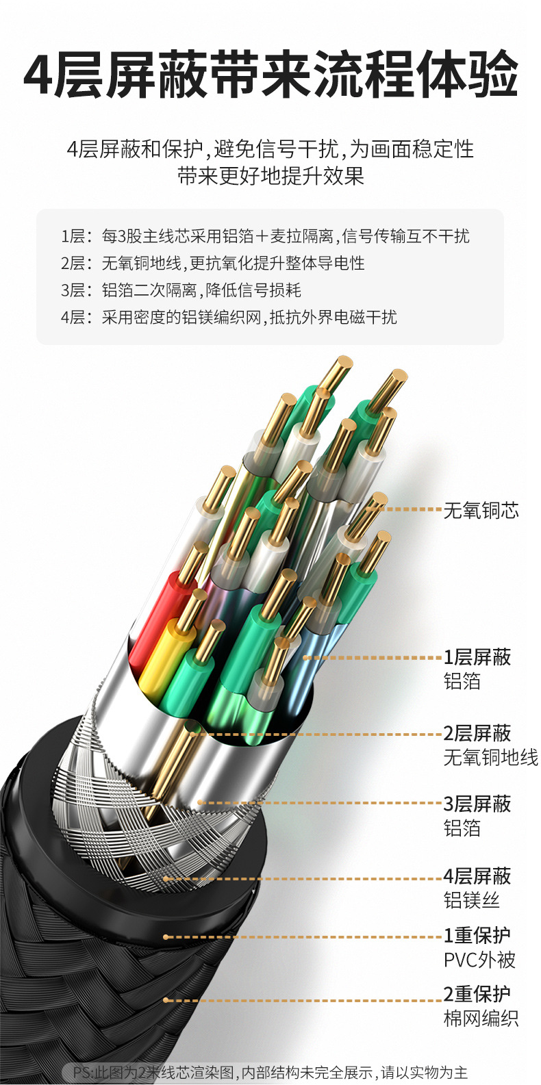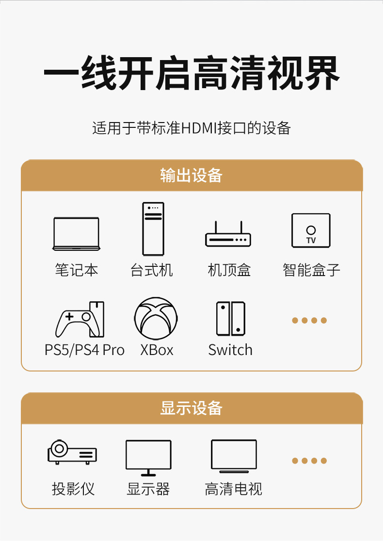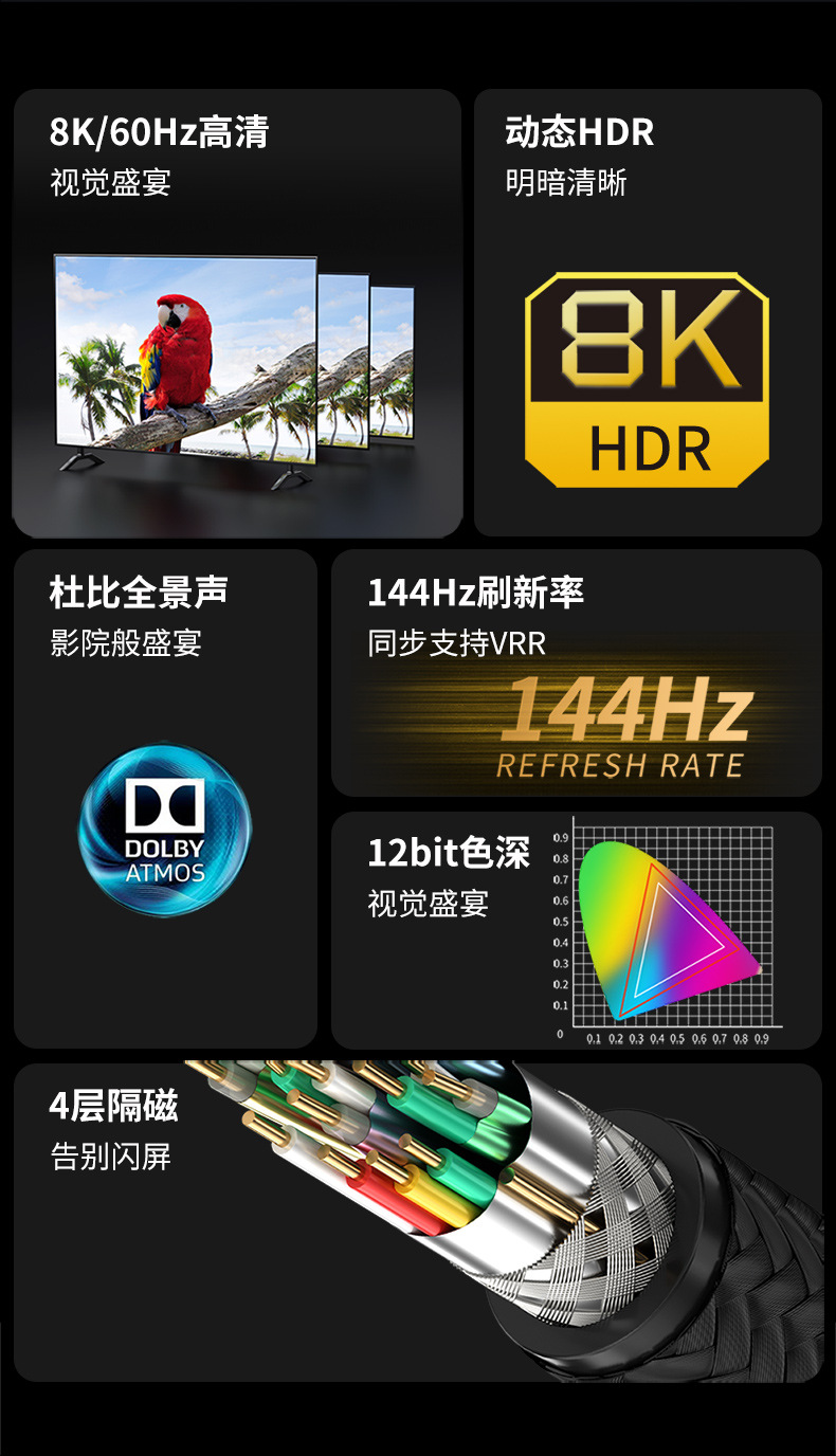 严选纯铜编织2.1hdmi5米高清线 PS5电脑显示器投影仪机顶盒连接视频线1根