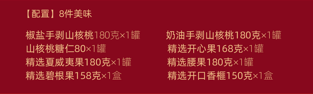 【八星报喜礼盒】汪记山核桃坚果零食大礼包年货坚果礼盒净重1276g