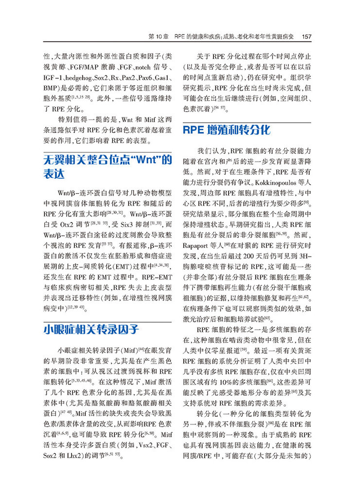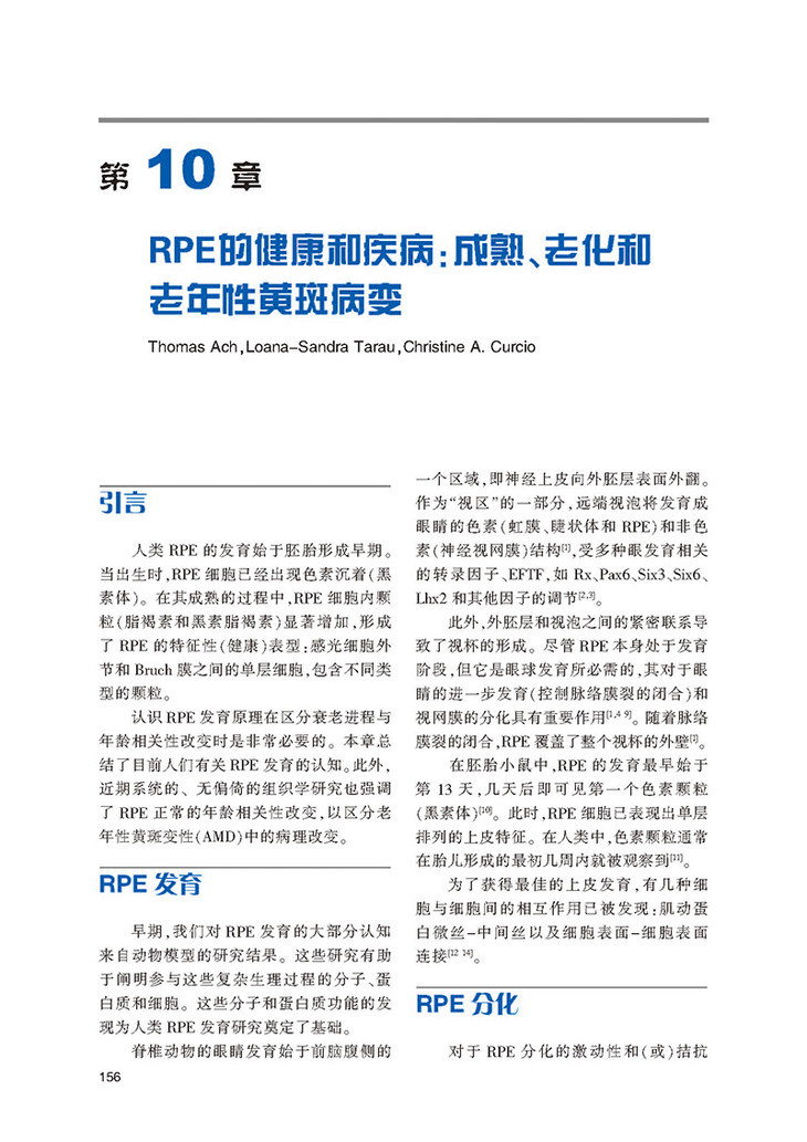 本书主要从5个方面对视网膜色素上皮(RPE)进行了深入阐述,包括RPE生理功能、RPE与疾病、RPE与检查诊断、RPE与治疗,以及RPE研究模型。第1部分对RPE离子通道,以及RPE与血管内皮生长因子的关系等进行了深入剖析;第2部分描述了RPE与近视、增殖性病变、黄斑病变等疾病的关系;第3部分论述了RPE在光学相干断层扫描、自发荧光中的作用;第4部分介绍了RPE细胞疗法、基因治疗和激光治疗的现状和未来方向;第5部分重点阐述了不同试验模型在RPE研究中的作用。本书可加深眼科医生及相关学者对RPE的理解,为国内相关研究及临床应用提供一定参考。