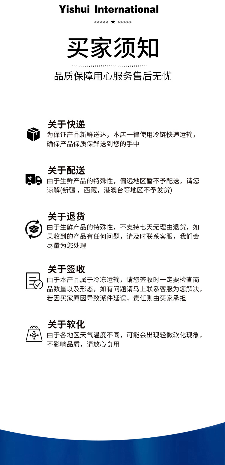 【品名】【超值3袋装】一水 挪威进口鲭鱼 个大肥美 肉质鲜嫩 240g*3袋 【规格】240g*3袋 【产地】挪威 【保质期】-18°18个月 【发货包装】独立包装 【发货地】沈阳 【发货快递】顺丰 【不发货区域】新疆、西藏、海南、港澳台 【发货时效】48-72小时,周末节假日顺延 【售后标准】 1、收货时有解冻不代表不新鲜,不作为售后依据。 2、售后务必签收12小时之内处理,逾期不予赔付。 3、签收后务必及时冰箱冷冻储藏 4、乡镇及偏远地区客户下单前务必确认附近有无顺丰站点,因当地没有顺丰站点导致的快递延误或无法派送不予售后! 5、下单之前务必确认清楚下单,顺丰不支持更改地址 6、不支持拒收,(拒收不予处理售后)因客户原因导致的无法签收,不予赔付。 承诺:48小时之内顺丰发货(因生鲜冻品的特殊性,通常不支持拒收,有问题务必不要丢弃,请先签收拍照核实后进行售后,丢弃产品则无法进行售后) |