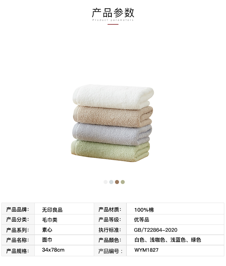 纯棉面巾单条 2条装 家用吸水不易掉毛 无印良品