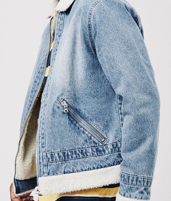 大身空军款裁剪直身翻领版型 全身YITZIP客供纯金属拉链头!主拉链门襟 两个侧边大包边处理 !侧边2个斜角度的拉链口袋 袋口丹宁布细腻包边