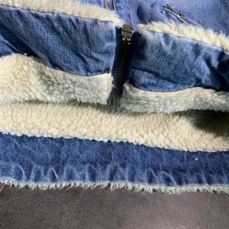 整批出口一个集装箱爆单 罕见外贸出口真正纯原! 空军款飞行员全羊羔绒丹宁牛仔外套