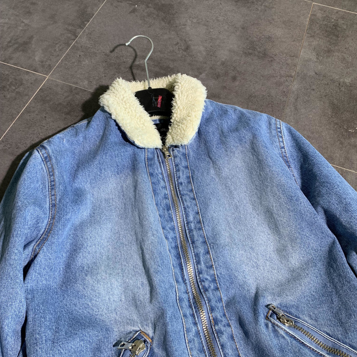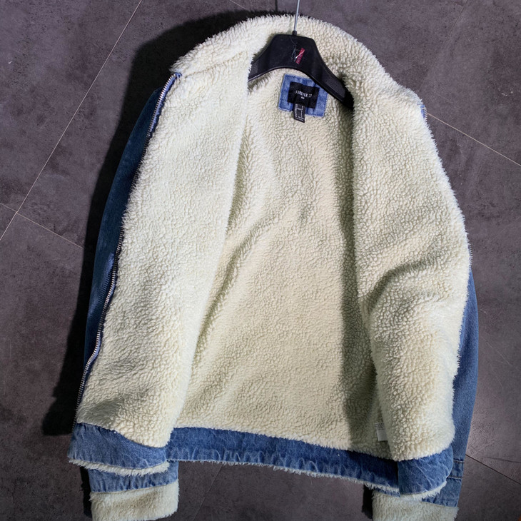 空军款飞行员全羊羔绒丹宁牛仔外套