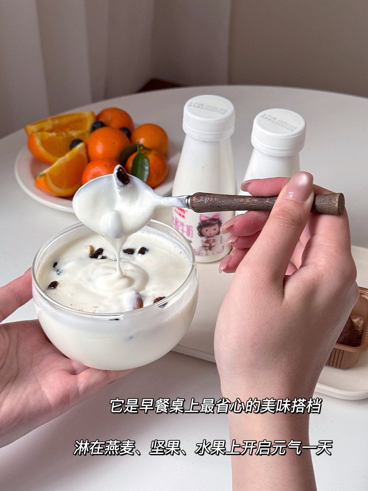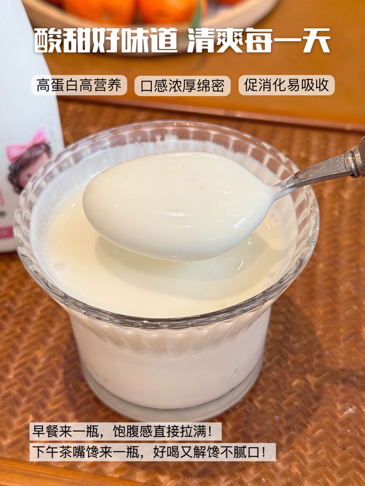 百搭吃法解锁多样美味,搭配坚果、燕麦、水果,早餐丰富不单调,饱腹又健康。健身党、全家老小都能放心喝,好喝又营养,日常必备的健康酸奶