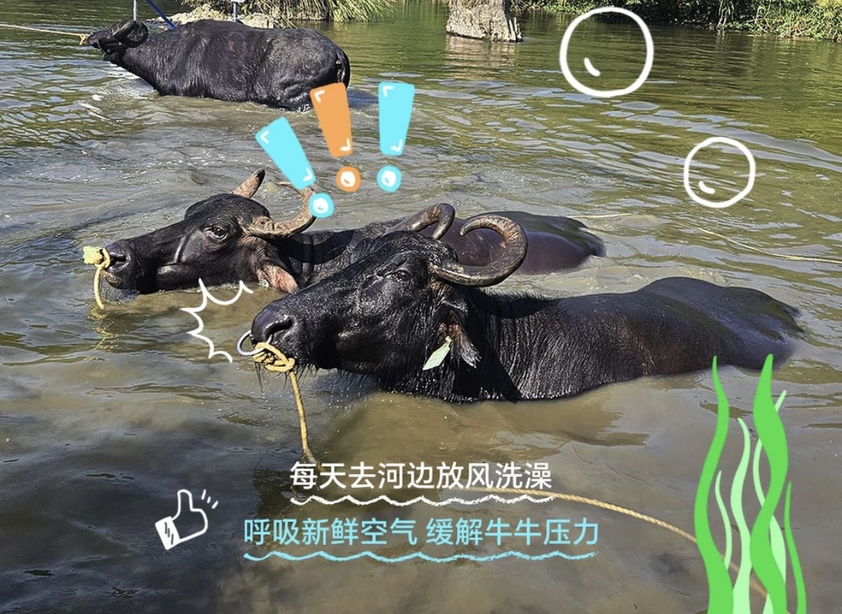 水牛自由散养,吃甘蔗、饮山泉